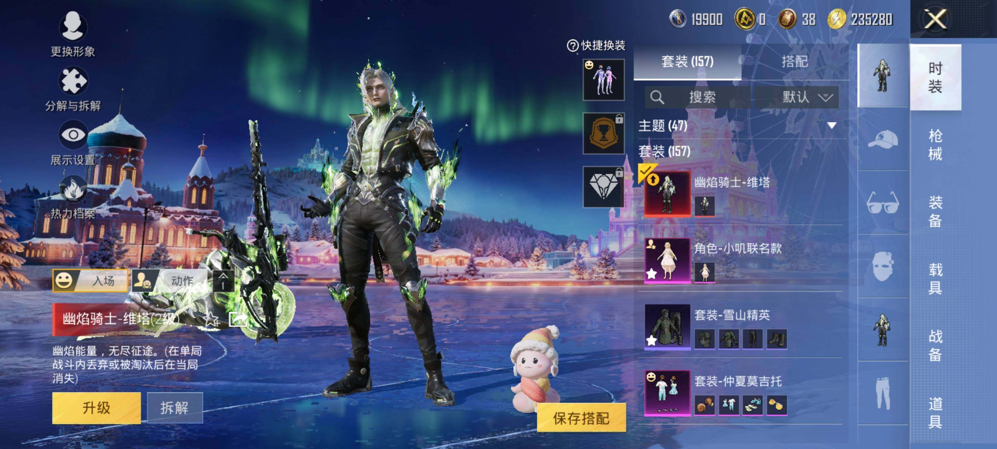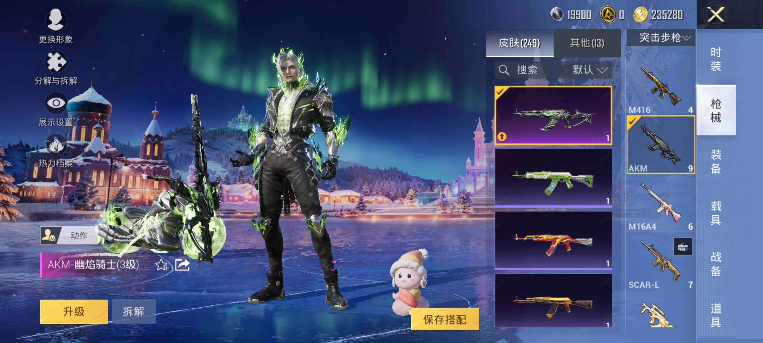AKM-幽焰骑士,M416-五爪金龙,GROZA-精灵之光,P90-沙丘之主,Kar98K-巳巳如意,M24-星之信仰