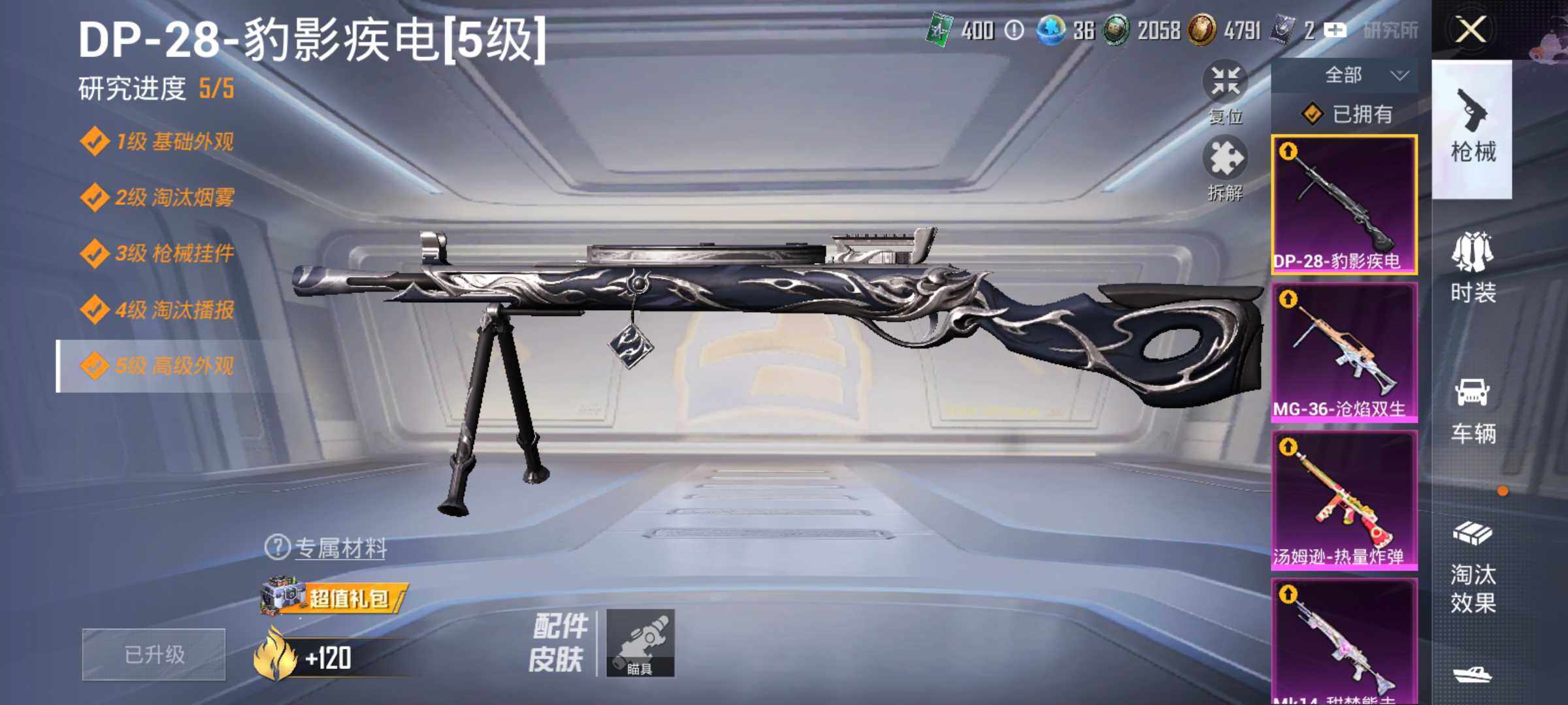 M416-星际漫游,AKM-奇异狩猎者,M416-快乐主宰,M416-黄金龙骨,M762-奇异狩猎者,M24-奇异狩猎者,AWM-黄金龙骨,S686-奇异狩猎者
