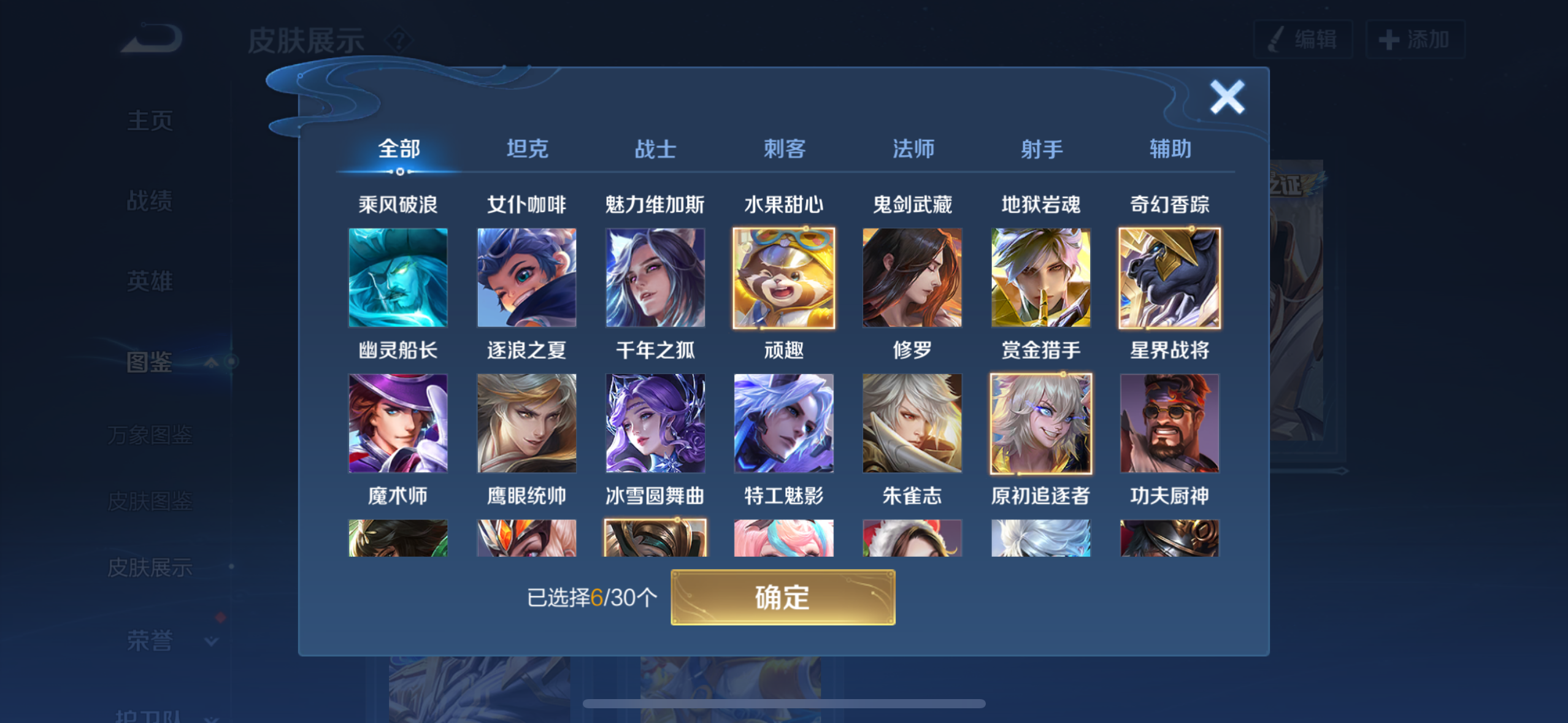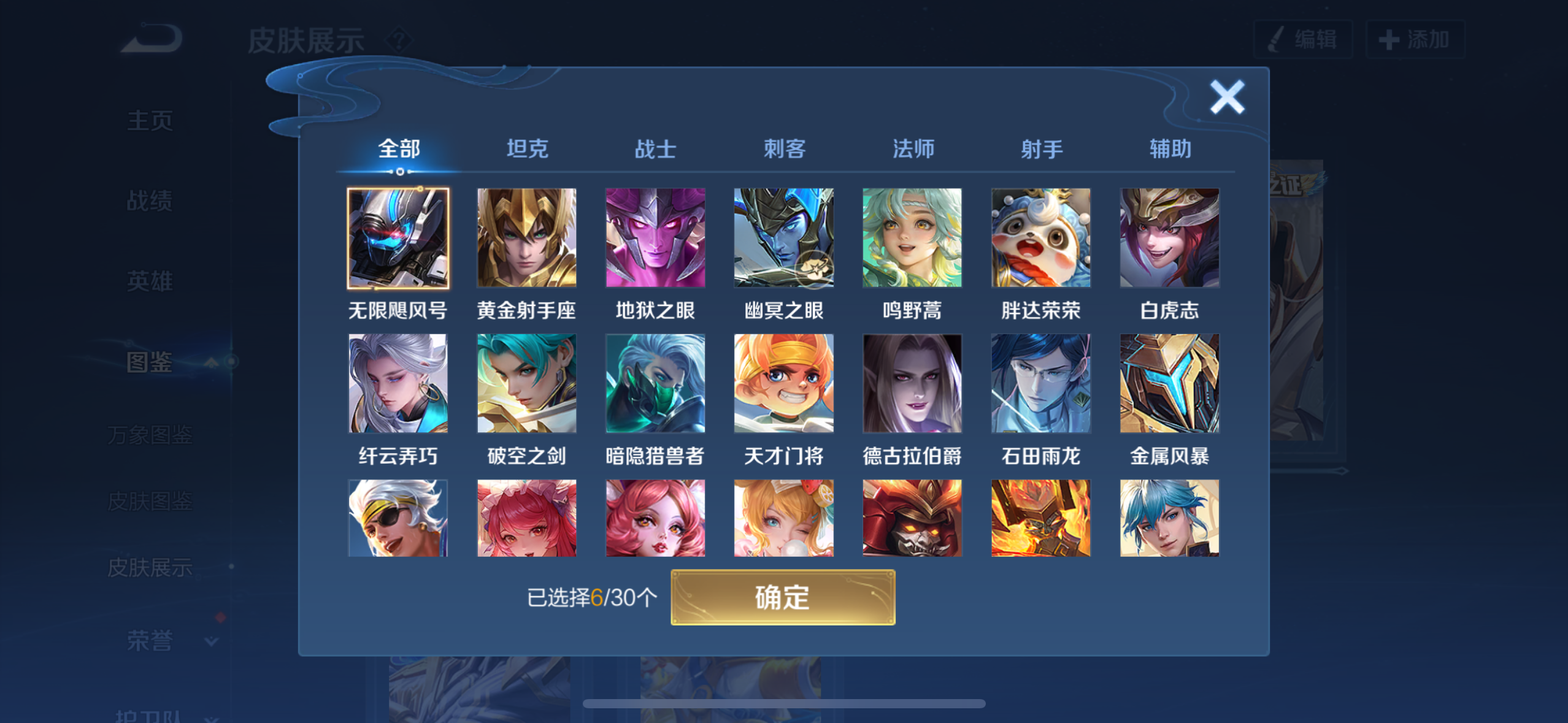 胖达荣荣-梦奇,白虎志-百里玄策,地狱之眼-宫本武藏,黄金射手座-后羿,桑启鸣野蒿