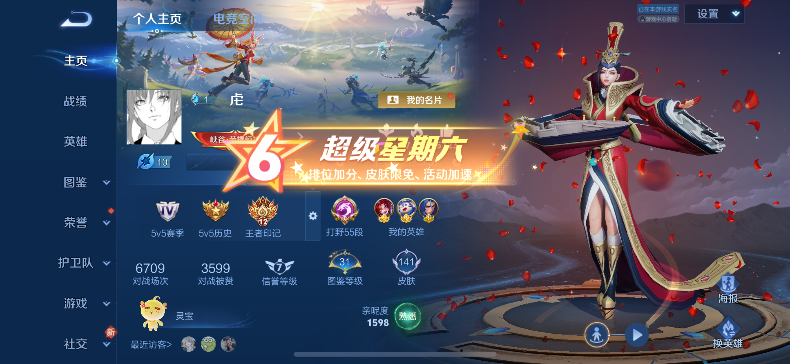PX_2093648-实名: 可修改 性别: 男号 贵族等级: V7 英雄数: 123 皮肤数: 141 荣耀水晶: 武则天,无限飓风号 星传说: 幽冥之眼 传说皮: 黄金射手座,地狱之眼,胖达荣荣 限定皮: 白虎志,瑞麟志,朱雀志,鸣野蒿,逐霄战戟 亮点: 【店长推荐精品号】qq钱包注册不满15天无法注销,打野路55段,历史金标百里玄策最高战力10989,历史金标曹操最高战力10160,1荣耀典