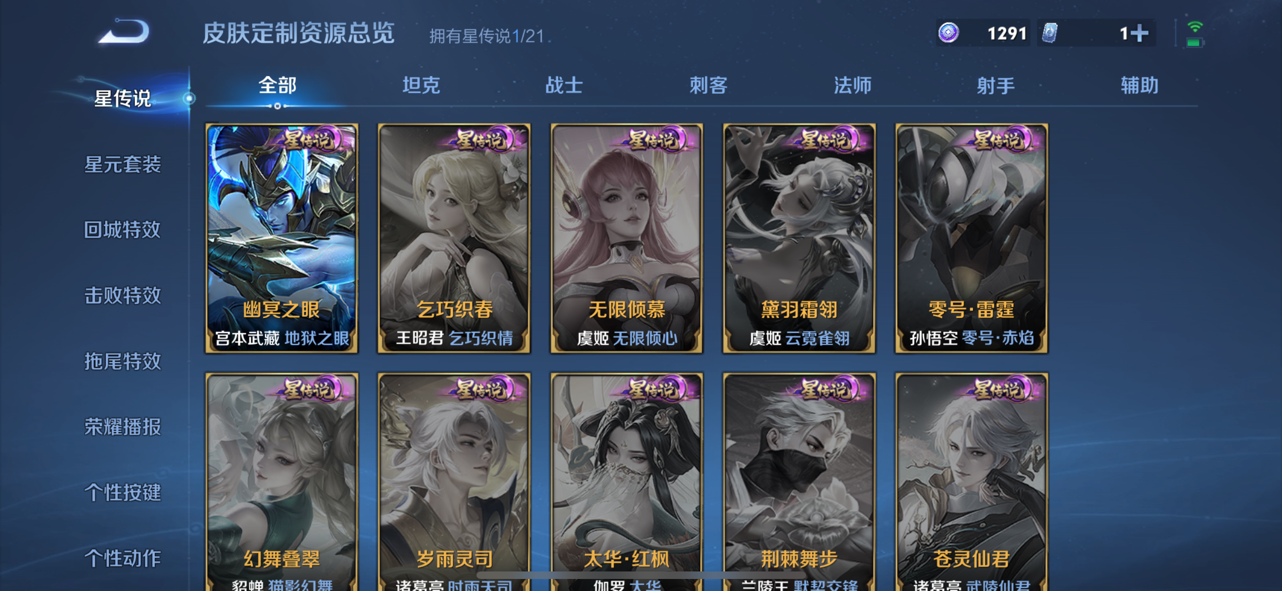 - PX_2027002-【164皮1典藏10传说全息碎影 地狱火 云鹰飞将 游龙清影】:安卓Q-V7-最强王者段位-122英雄-164皮肤-1典藏-0珍品无双-0无双-1珍品传说-10传说-44史诗 【荣耀典藏】:孙悟空全息碎影 【珍品传说】:孙策时之奇旅 【内测皮肤】:狂铁特工战影 【传说皮肤】:孙悟空地狱火,孙尚香末日机甲,貂蝉猫影幻舞,李信一念神魔,曜云鹰飞将,西施游龙清影,赵云淬星耀世,赵云