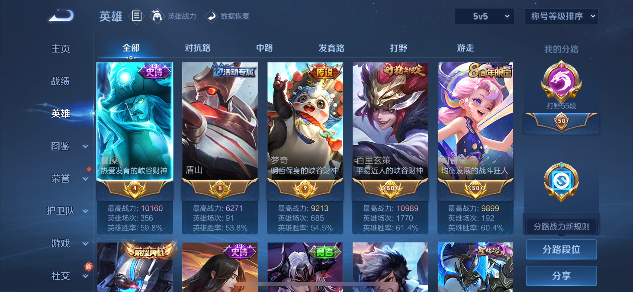 - [11523960]V5 4传说 124英雄 125皮肤 可修改实名 优质装备:冠军飞将,末日机甲-孙尚香(绿蚂蚱) 珍宝阁皮:蔷薇恋人 限定皮:愿照·九州拓(澜年限),鸣野蒿,霸王别姬-虞姬,山海·玄木吟(马可年限) 史诗皮:龙之律动,百相守梦-周瑜,百相守梦-黄忠,无限星赏官,时之恋人-孙尚香,乱世虎臣,节奏热浪,修罗,女仆咖啡,摇滚巨星,水果甜心,绅士熊喵,天才门将,鬼剑武藏,原初追逐者,鹰眼统帅,魅力维加斯,黎明之约,未来纪元-赵云
