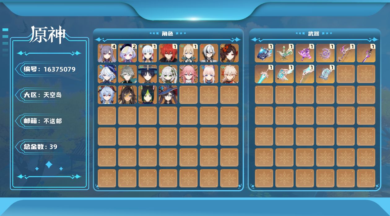 [16375079]60级/39黄/男主/18个五星角色/12个五星武器
