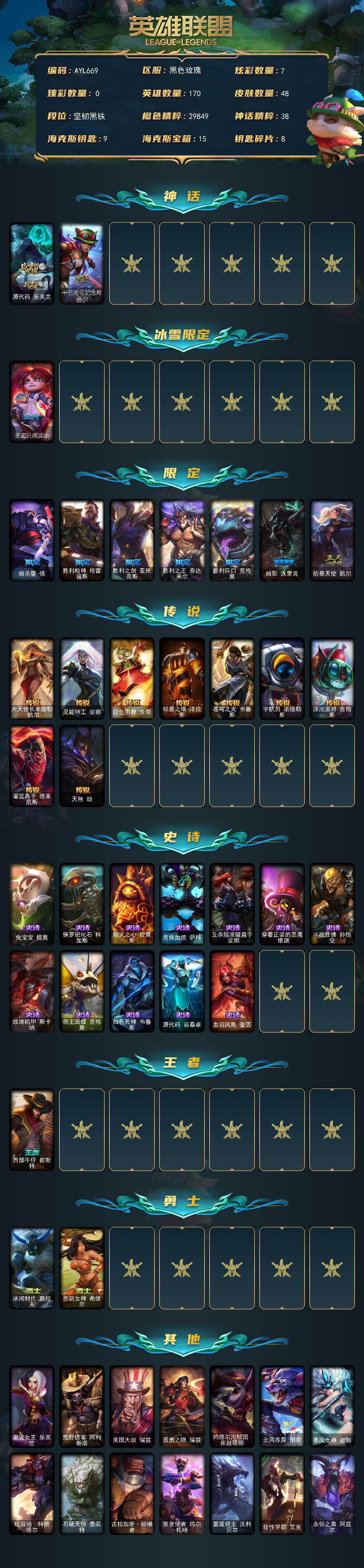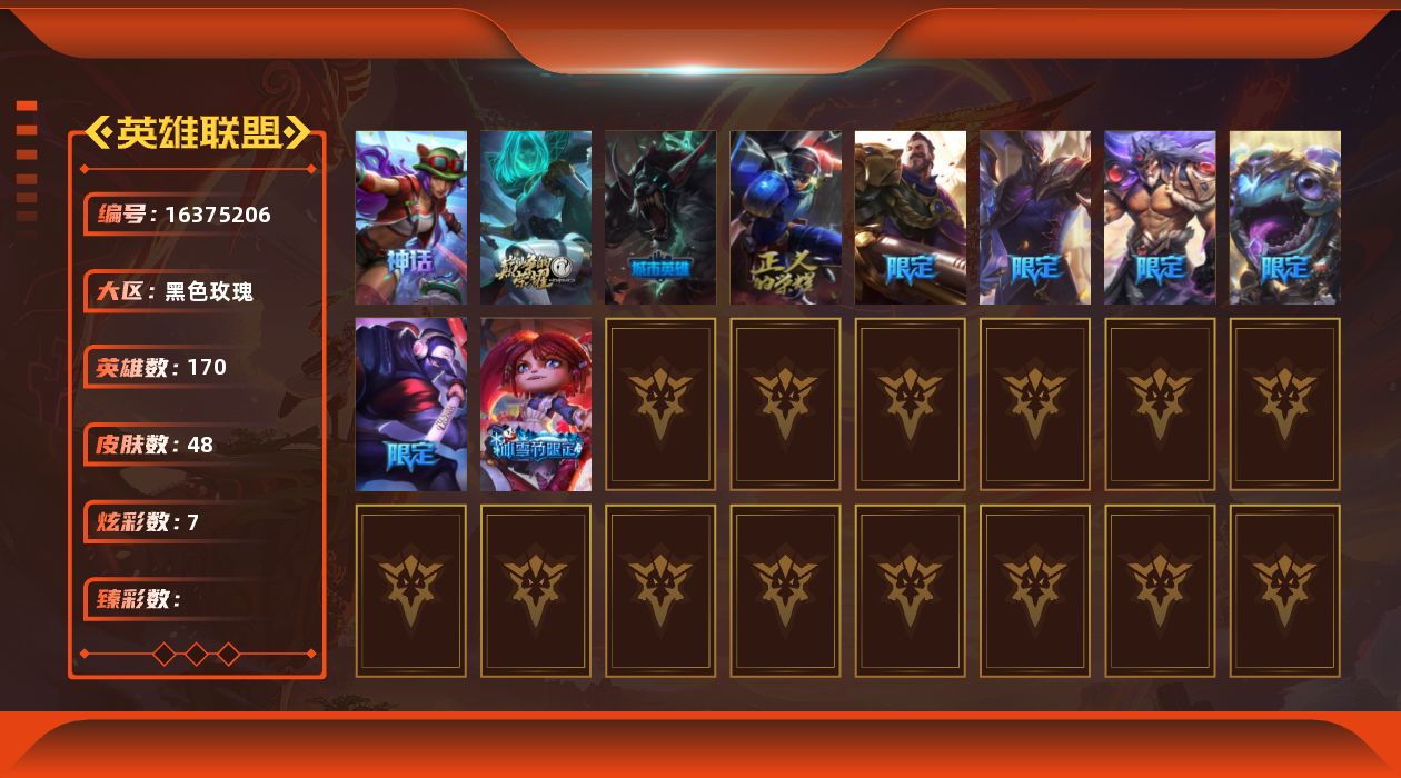 [16375206]【店主推荐捡漏号】未定级段位-170英雄-48皮肤-7炫彩-0终极-2神话-8限定-9传说-12史诗