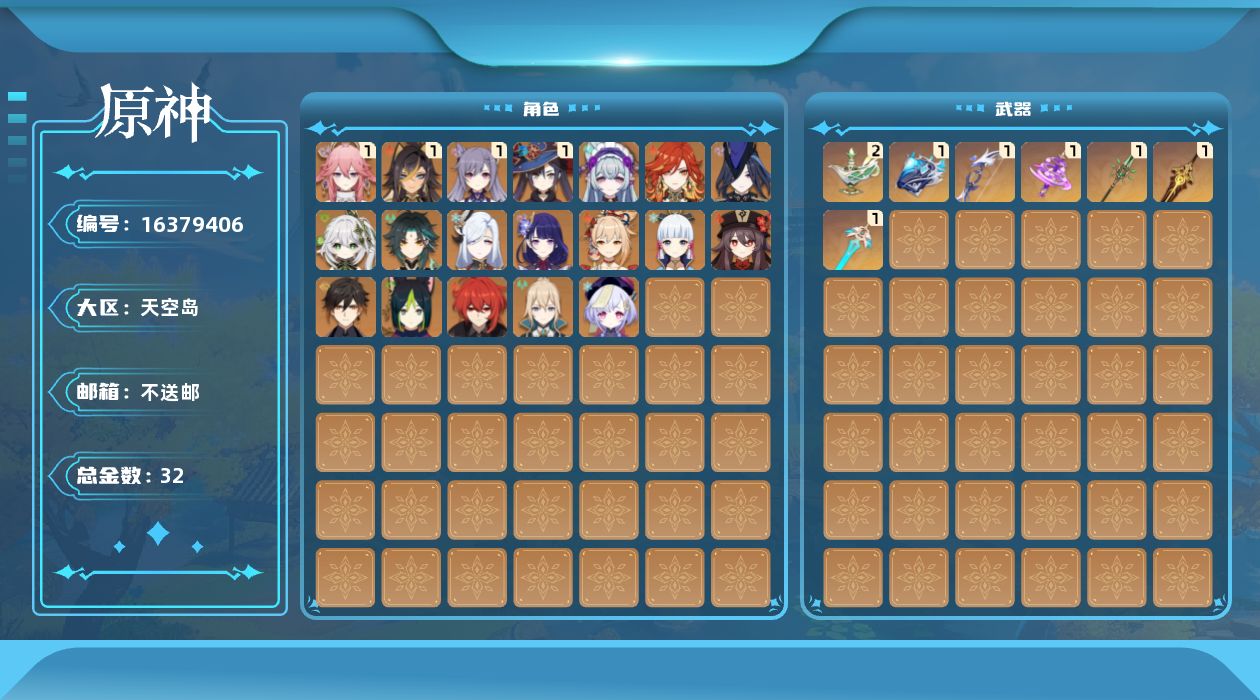 [16379406]56级/32黄/女主/20个五星角色/7个五星武器