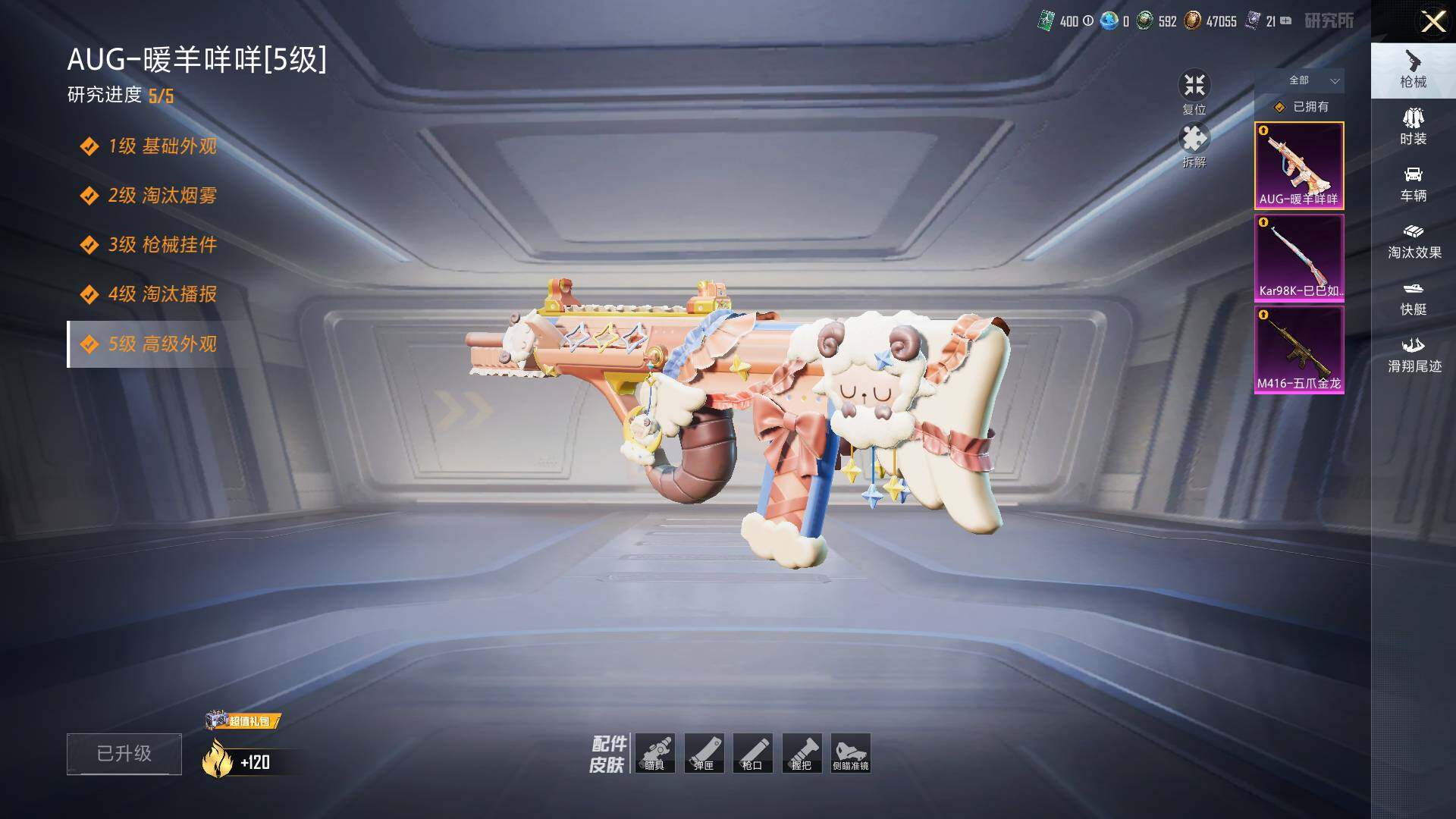 M416-五爪金龙,AUG-暖羊咩咩,Kar98K-巳巳如意