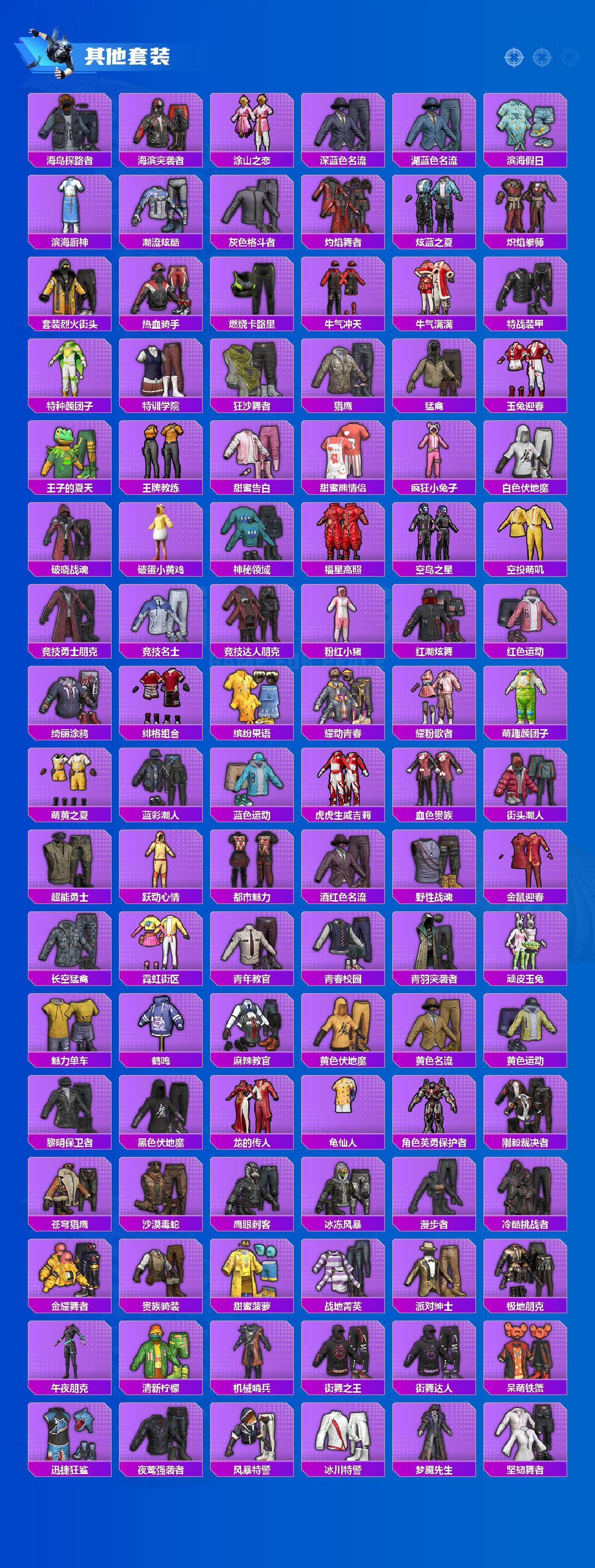 套装-梦幻火箭,套装-都市猎人,套装-暗夜行者,套装-金属狂野,套装-王牌四分卫,套装-碧影闪光,套装-莲影清波,奇迹天团套装,好奇恐龙套装,套装-鹰眼刺客,套装-呆萌铁蟹,套装-迅捷狂鲨,套装-梦魇先生,套装-万圣娃娃,套装-萌神柯基,套装-仓鼠灰灰,套装-暴走罗小黑