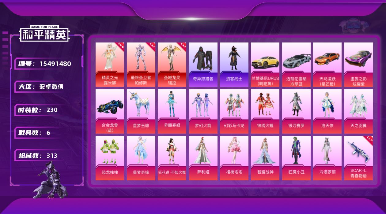 [15491480]【1691】安卓 微信-3神装-15粉装-16特效枪-6载具-8粉色飞行器-133411热力值-16王牌印记-230套装-313枪皮