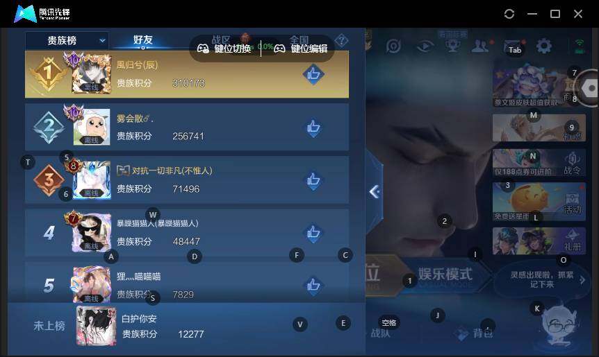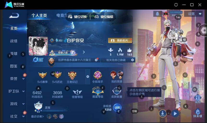 - [11879405]V7 2典藏 13传说 125英雄 261皮肤 可修改实名 优质装备:鸣剑·曳影,弑枪猎影(韩信典藏),黄金狮子座,云鹰飞将(小将军),一念神魔,零号·赤焰,地狱之眼,淬星耀世,挚爱之约,神器·狴犴令 传说皮:乘龙·铭钟鼎(赵云年限),幻光神枪 珍宝阁皮:万物之道,优雅恋人,玩趣恶龙 限定皮:愿照·九州拓(澜年限),鸣野蒿,遇见飞天,高山流水,五谷丰年,梁祝,龙胆,李小龙,寅虎·赤拳(老虎年限) 史诗皮:鸭鸭历险记-刘禅,化蝶舞,星界战将,龙之律动,茶境仙,琥珀纪元伽罗,百相守梦-百里守约,百相守梦-黄忠,紫霞仙子,电玩小子(小书包),白龙吟,黄金分割率,特工魅影,千年之狐,百相守梦(关羽),电玩·爆裂旋风,江河有灵,雪夜绮愿(周瑜),高渐离燃音魔法,蒙恬荣光圣徽,偶像歌手,龙骑士(小龙虾),暗夜猫娘,无限星赏官,青蛇,末日机甲-吕布,猫狗日记-孙策,猫狗日记-大乔,时之恋人-孙尚香,乱世虎臣,节奏热浪,修罗,女仆咖啡,摇滚巨星,水果甜心,绅士熊喵,天才门将,星夜王子,心灵骇客,功夫厨神,德古拉伯爵,暗隐猎兽者,幽灵船长,鬼剑武藏,暗渊魔法,心灵战警,乐园奇幻夜,天秀·启明,舞动绿茵,地狱岩魂,纤云弄巧,拒霜思,缤纷独角兽,乘风破浪,逐浪之夏,月团寄思,水晶猎龙者,曙光守护者,箭羽风息,金属风暴,原初追逐者,圣诞狂欢,圣诞恋歌,鹰眼统帅,魅力维加斯,黎明之约,赏金猎手,千筹问战,无心,未来纪元-赵云