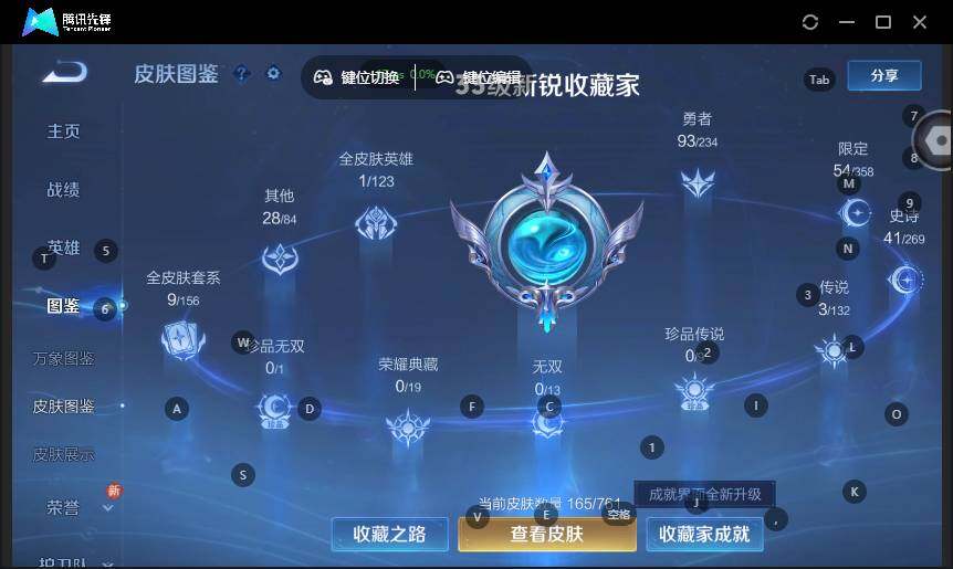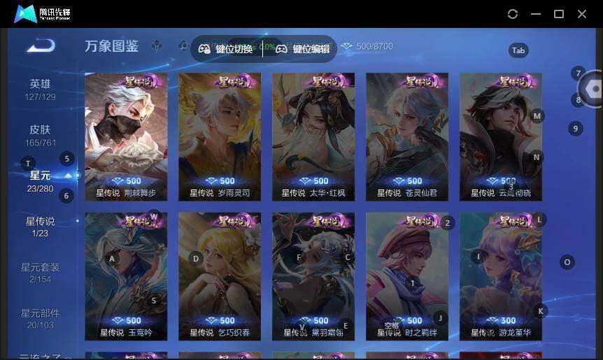 - PX_2082811-贵族等级: V5 英雄数: 121 皮肤数: 101 星传说: 幽冥之眼 传说皮: 黄金射手座,冠军飞将,云鹰飞将,澜逐花归海 限定皮: 游园惊梦,白鹤梁神女,蜜橘之夏,凤求凰,高山流水,寅虎·心曲