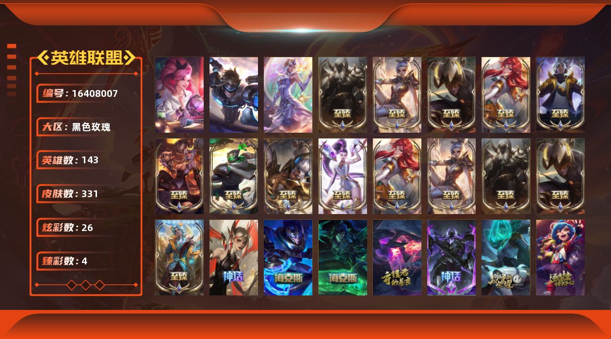 [16408007]【店主推荐捡漏号】未定级段位-143英雄-331皮肤-26炫彩-5终极-22神话-65限定-43传说-71史诗