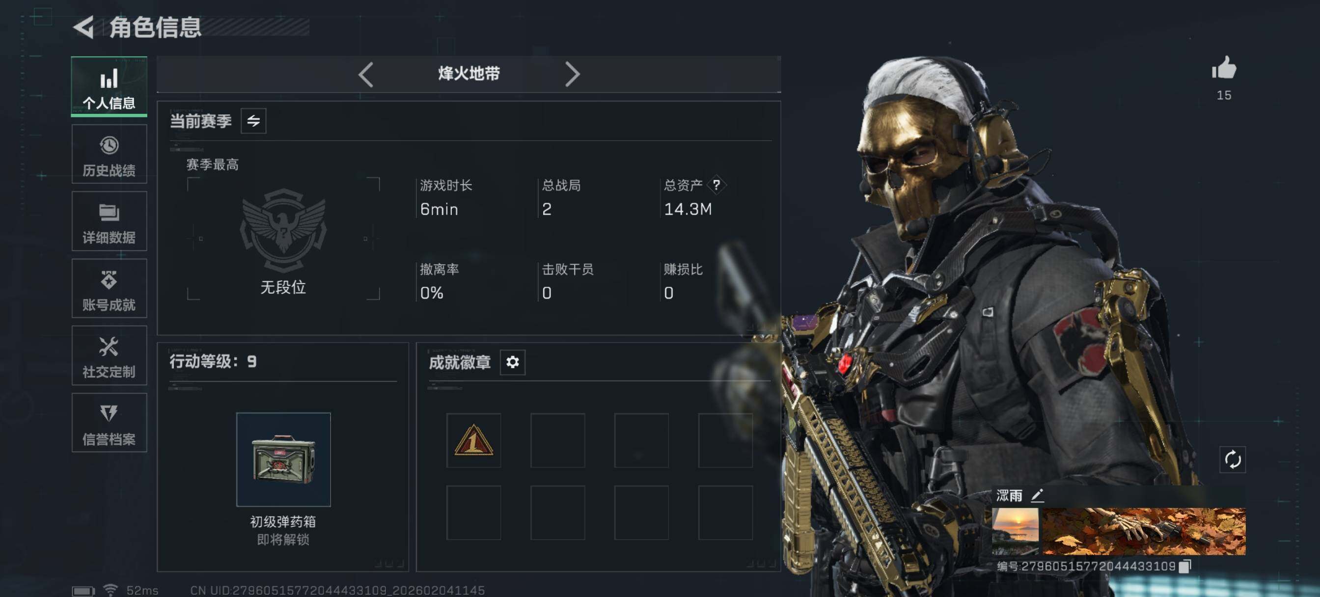 [16409449]【特价出售/店主推荐】14m总资产-3858k哈伏币-9烽火等级-青铜-1战场等级-无军衔