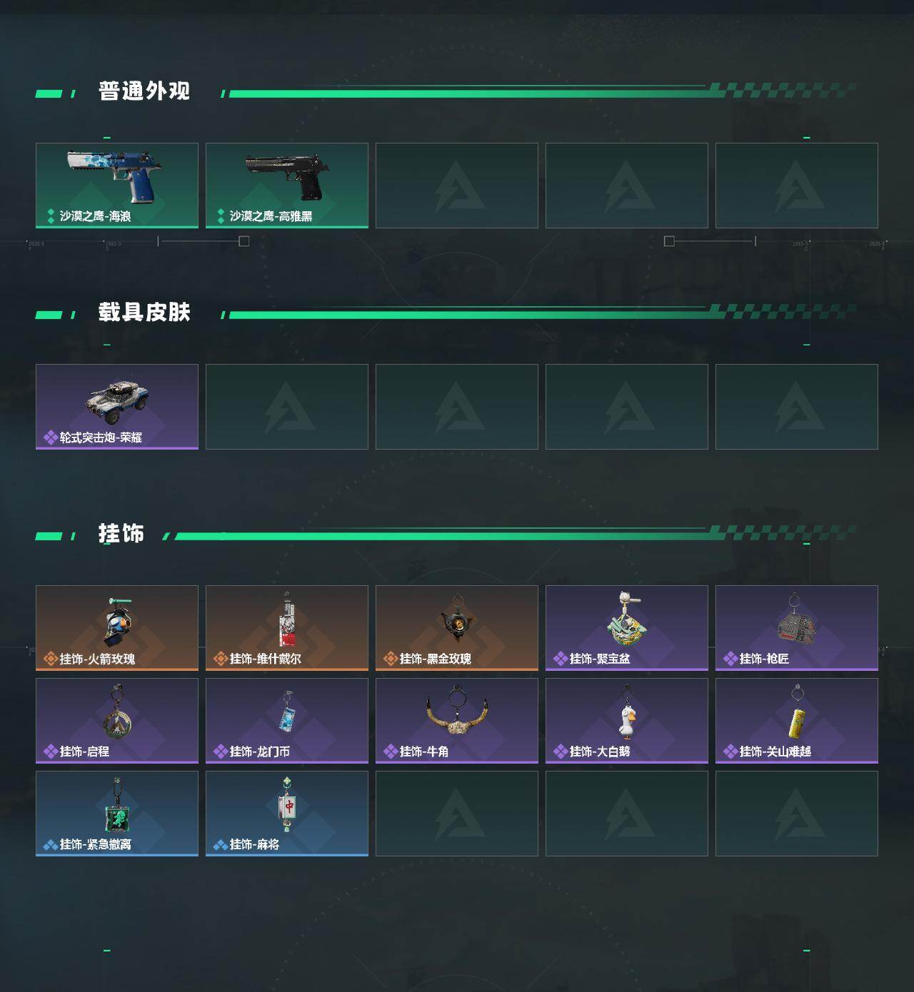【普通外观】:M4A1突击步枪-粉色涂装,M4A1突击步枪-高雅黑,M4A1突击步枪-海色,QBZ95-1突击步枪-高雅黑,QBZ95-1突击步枪-海浪,QBZ95-1突击步枪-海色,QBZ95-1突击步枪-2026,QBZ191突击步枪-三角洲力量,K416突击步枪-几何迷彩,K416突击步枪-高雅黑,M16A4突击步枪-高雅黑,AUG突击步枪-浅蓝涂装,M7战斗步枪-红色涂装,SG552突击步枪-浅蓝涂装,SG552突击步枪-海浪,SCAR-H战斗步枪-数码迷彩,G3战斗步枪-高雅黑,PTR-32突击步枪-黄