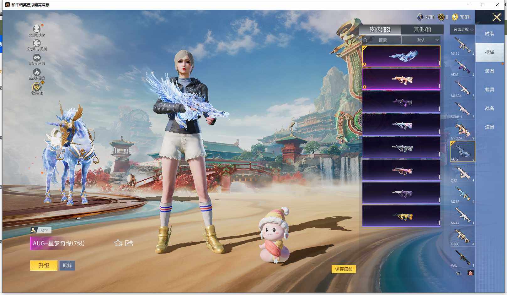 GROZA-焦糖拿铁,GROZA-镜光银凌,AUG-星梦奇缘,AUG-暖羊咩咩,Kar98K-巳巳如意,M24-镜域双华,MK12-雪月幻音,DP-28-千金淑猫
