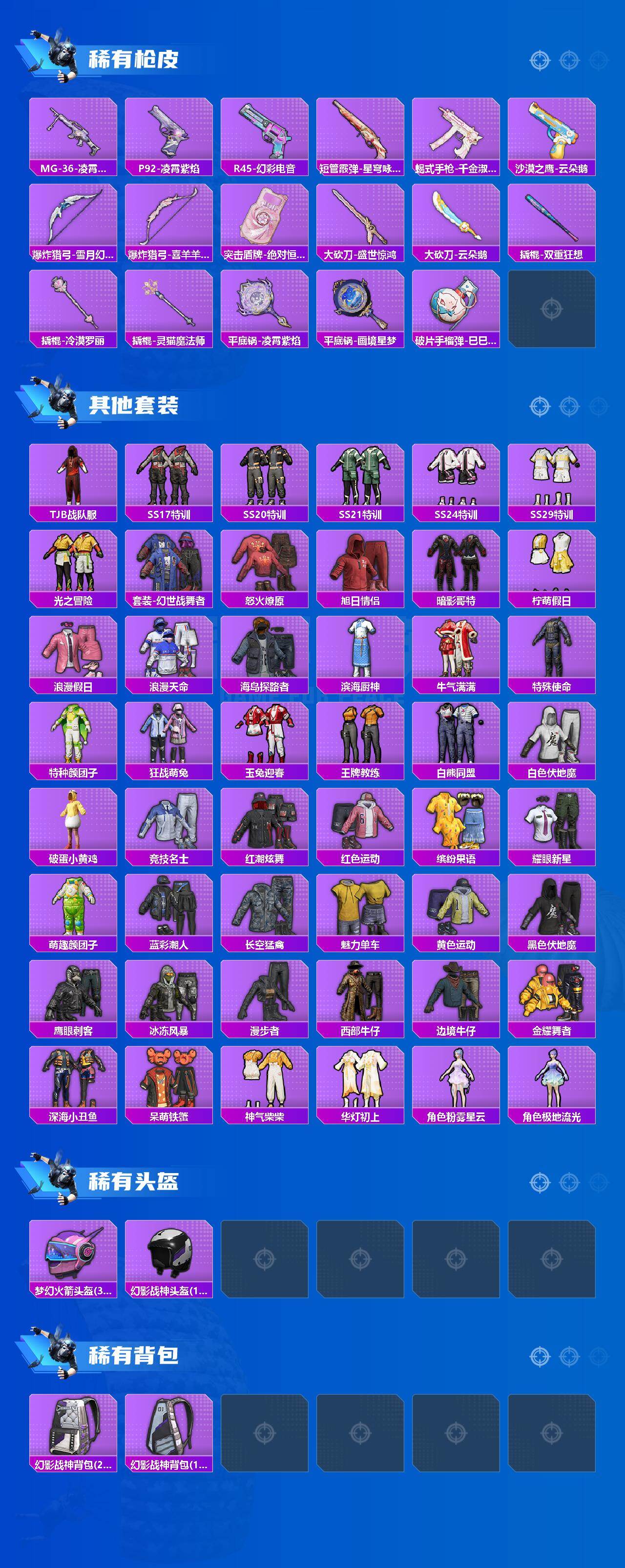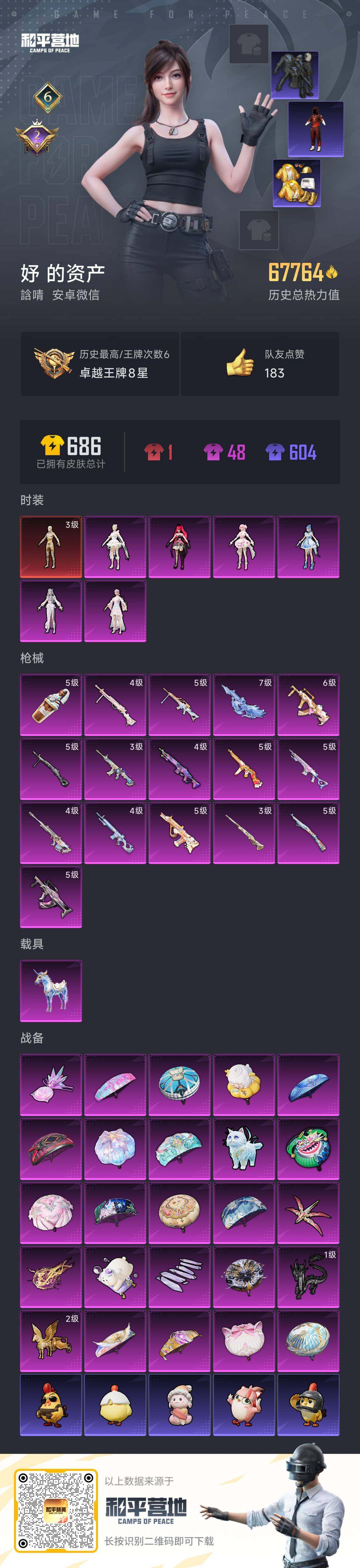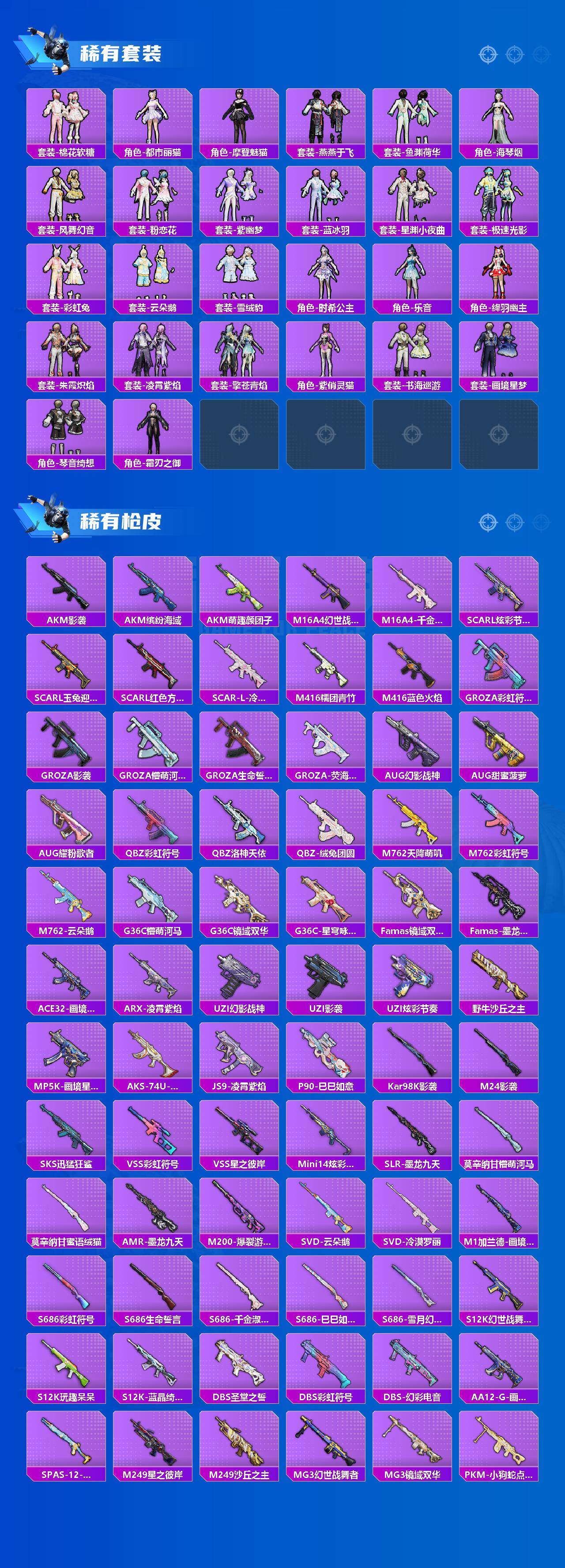 - [16554354]安卓 手Q-8粉装-6特效枪-3载具-0粉色飞行器-68342热力值-9王牌印记-155套装-209枪皮 【热门品类】:套装-龟仙人,套装-浪漫波比,套装-粉红小猪 【粉色套装】:粉装-蝶舞迷情,粉装-华贵君王,粉装-冰霜白皇,粉装-香水柠檬,粉装-星之彼岸,角色-零号机款机体服,粉装-精灵娃娃,粉装-霞光圣骑 【粉色枪皮等级】:AKM-梦之光华(四级),SCAR-L-童趣迷兔(五级),SCAR-L-青春物语(二级),M416-心之恋语(五级),M762-激战未来(四级),M762-甜心娃娃(二级) 【粉色载具】:阿斯顿马丁DBS(绿),阿斯顿马丁DBX(橙),合金龙骨(绿) 【粉色枪皮】:AKM-梦之光华,SCAR-L-童趣迷兔,SCAR-L-青春物语,M416-心之恋语,M762-激战未来,M762-甜心娃娃 【粉色降落伞】:精灵迷巫降落伞,马卡龙降落伞,荧光虫舞降落伞,香水柠檬降落伞,王牌四分卫降落伞,星之彼岸降落伞,齐天大圣降落伞,风花雪月降落伞,甜心娃娃降落伞,筑梦精灵降落伞,炫彩糖果降落伞 【稀有套装】:套装-龟仙人,套装-雪国风尚,套装-画境星梦,套装-琴音绮想 【稀有枪皮】:AKM-夜灯,AKM-彩虹符号,AKM-生命誓言,AKM-破晓战魂,AKM-萌趣颜团子,AKM-虎虎生威,AKM-霓虹街区,M16A4-夜灯,M16A4-幻世战舞者,M16A4-甜心亚梦,M16A4-生命誓言,SCAR-L-夏日绵绵冰,SCAR-L-炫彩节奏,SCAR-L-玉兔迎春,SCAR-L-玫瑰恋情,SCAR-L-生命誓言,M416-仓鼠灰灰,M416-动感兔斯基,M416-夜灯,M416-滑板小狐,M416-糯团青竹,M416-红色方程式,M416-绯红前夜,M416-蓝色火焰,GROZA-异彩先驱,GROZA-彩虹符号,GROZA-治愈之星,GROZA-马卡龙,GROZA-黑色刀锋,AUG-圣光天使,AUG-耀粉歌者,AUG-青春冒险家,QBZ-原初圣火,QBZ-彩虹符号,QBZ-潮汐统领,QBZ-飞驰魅影,M762-天降萌叽,M762-拳皇97,M762-牛气冲天,M762-瑞龙福将,M762-绯红前夜,M762-镭射皇者,Mk47-青春冒险家,G36C-时空追击者,G36C-暗夜玫瑰,AC-VAL-天降萌叽,AC-VAL-甜心亚梦,蜜獾-娇憨猪猪,ACE32-画境