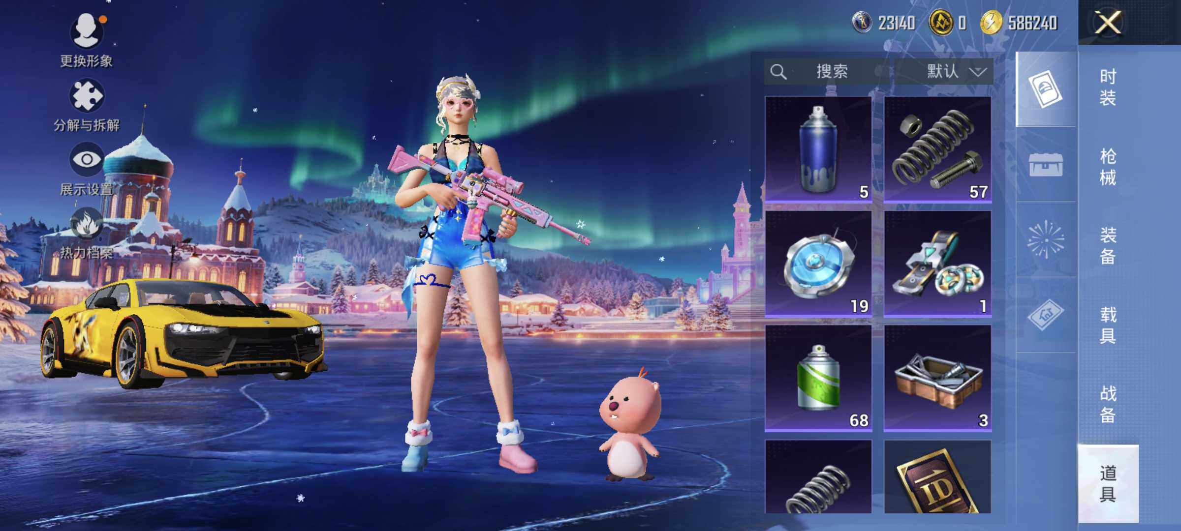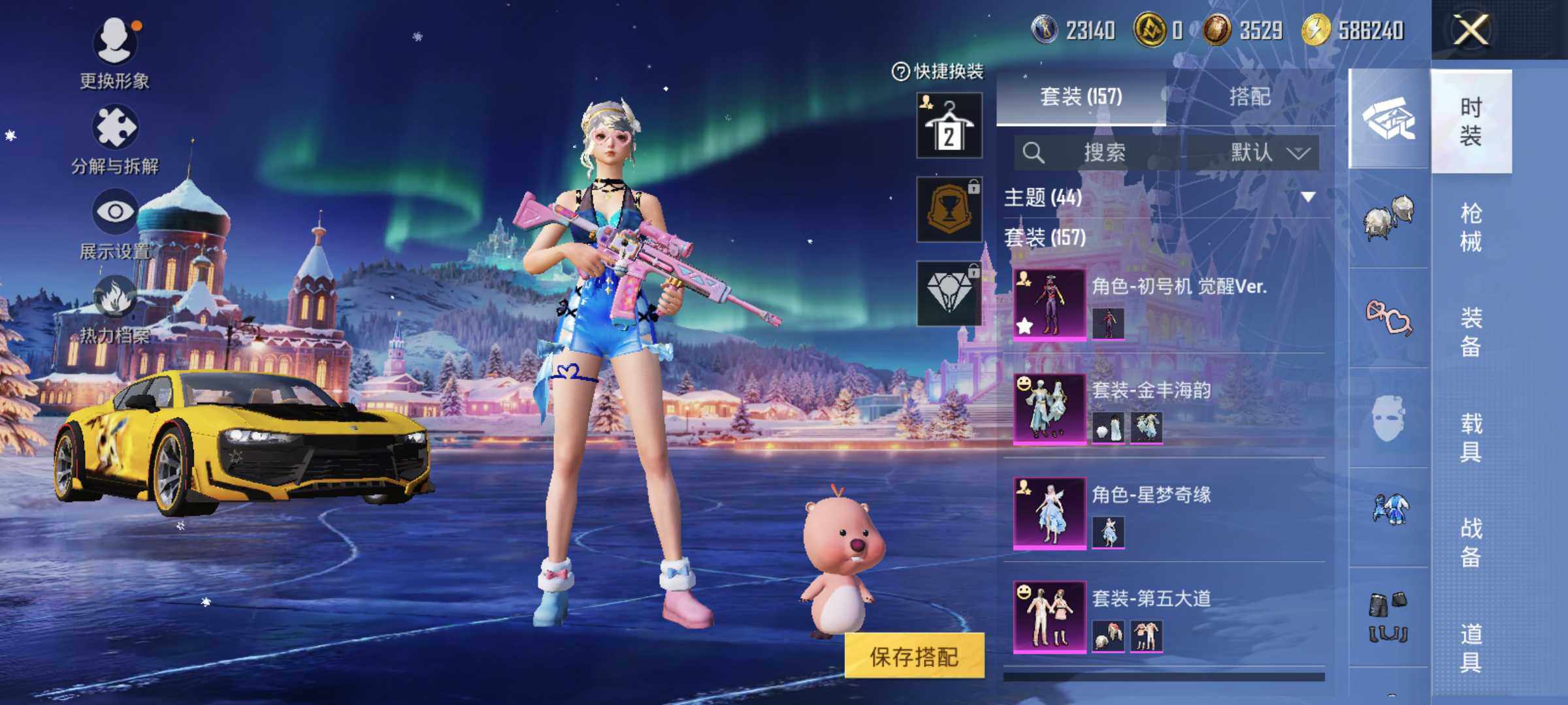SCAR-L-锦绣绵绵,M416-电玩时刻,GROZA-巴啦啦小魔仙,Famas-觉醒初号机,UMP45-量子极限,UMP45-宇宙意志,P90-金丰海韵,Kar98K-巳巳如意,M200-梦海之灵