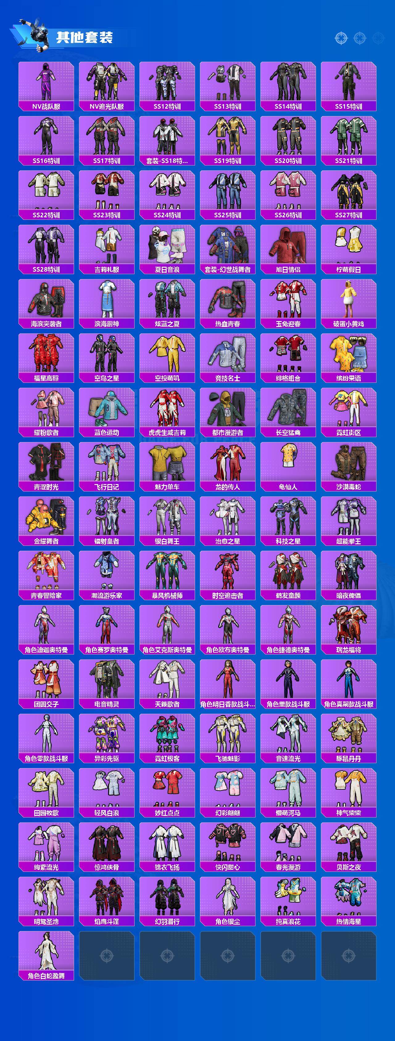 【稀有套装】:套装-龟仙人,套装-雪国风尚,套装-雏菊兔兔,套装-萝兰蝴蝶,套装-燕燕于飞,套装-鱼渊荷华,套装-樱梦幻音,套装-紫幽梦,套装-蓝冰羽,套装-极速光影,套装-云朵鹅,套装-雪绒豹,套装-朱霞炽焰,套装-凌霄紫焰,套装-擎苍青焰,套装-画境星梦,套装-琴音绮想