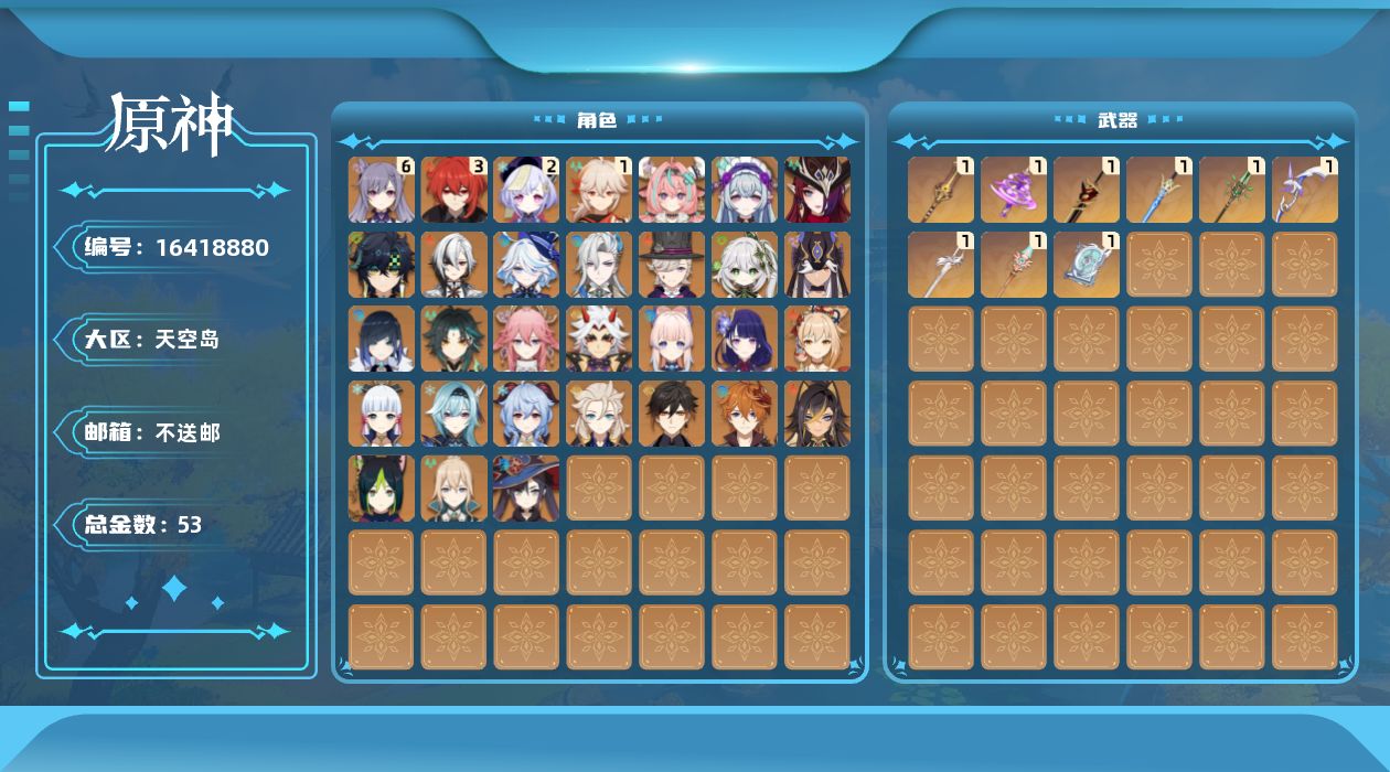 [16418880]60级/53黄/男主/31个五星角色/10个五星武器