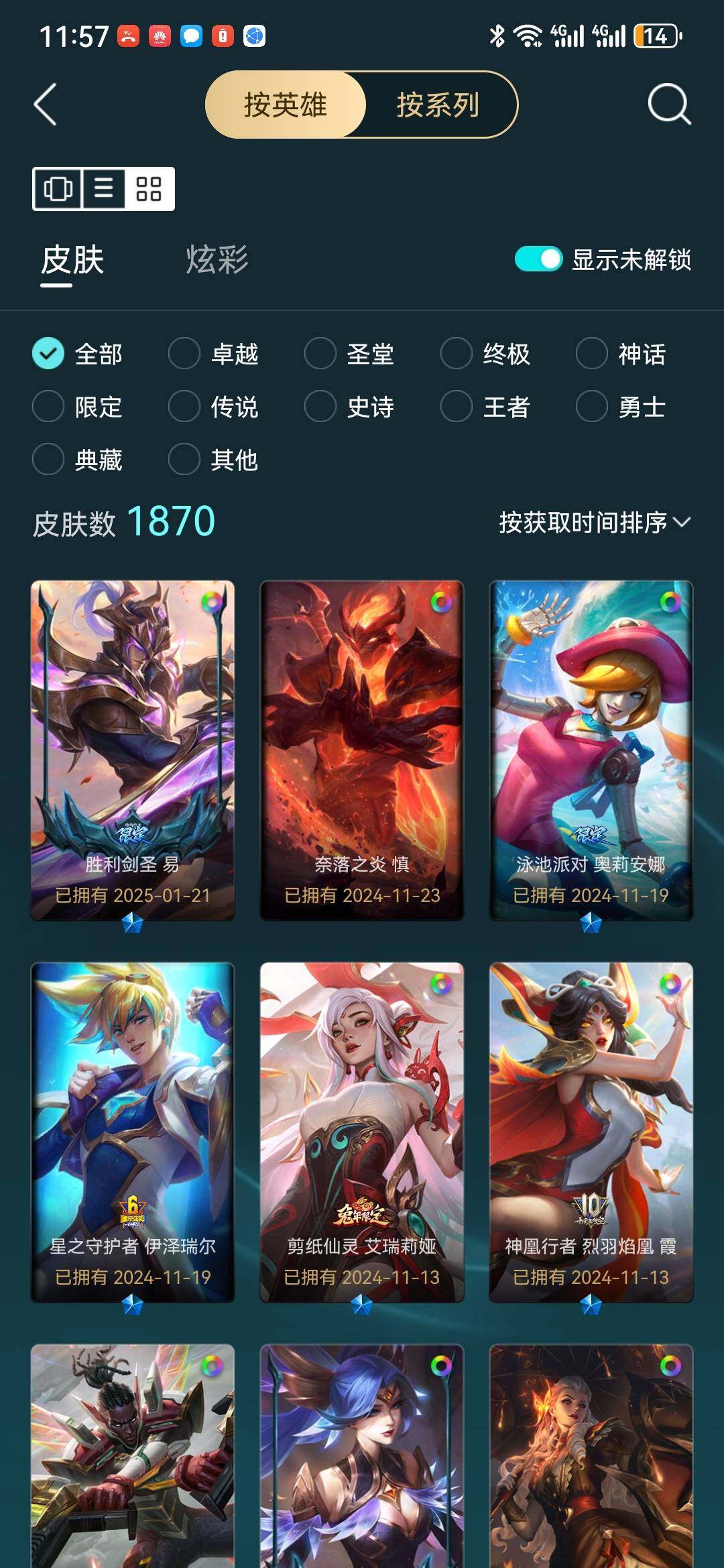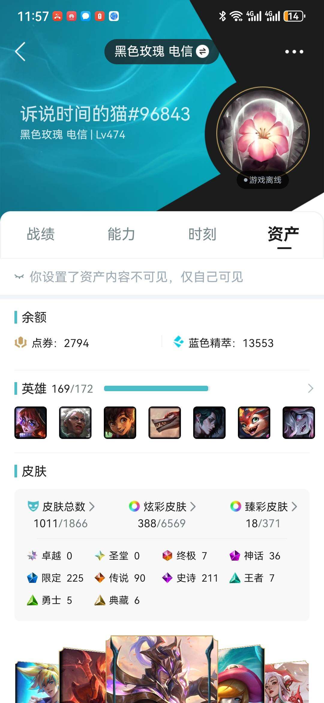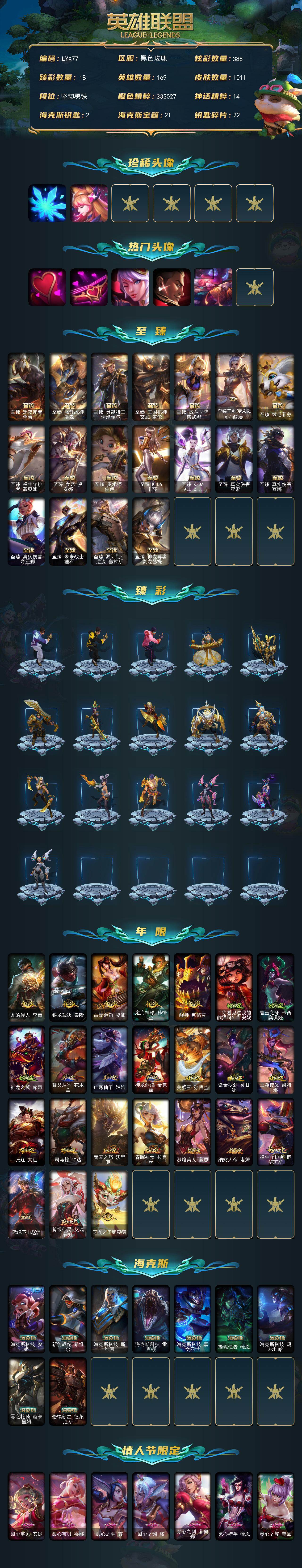 [16419402]可二次【特价出售/店主推荐】未定级段位-169英雄-1011皮肤-388炫彩-9终极-36神话-225限定-90传说-211史诗