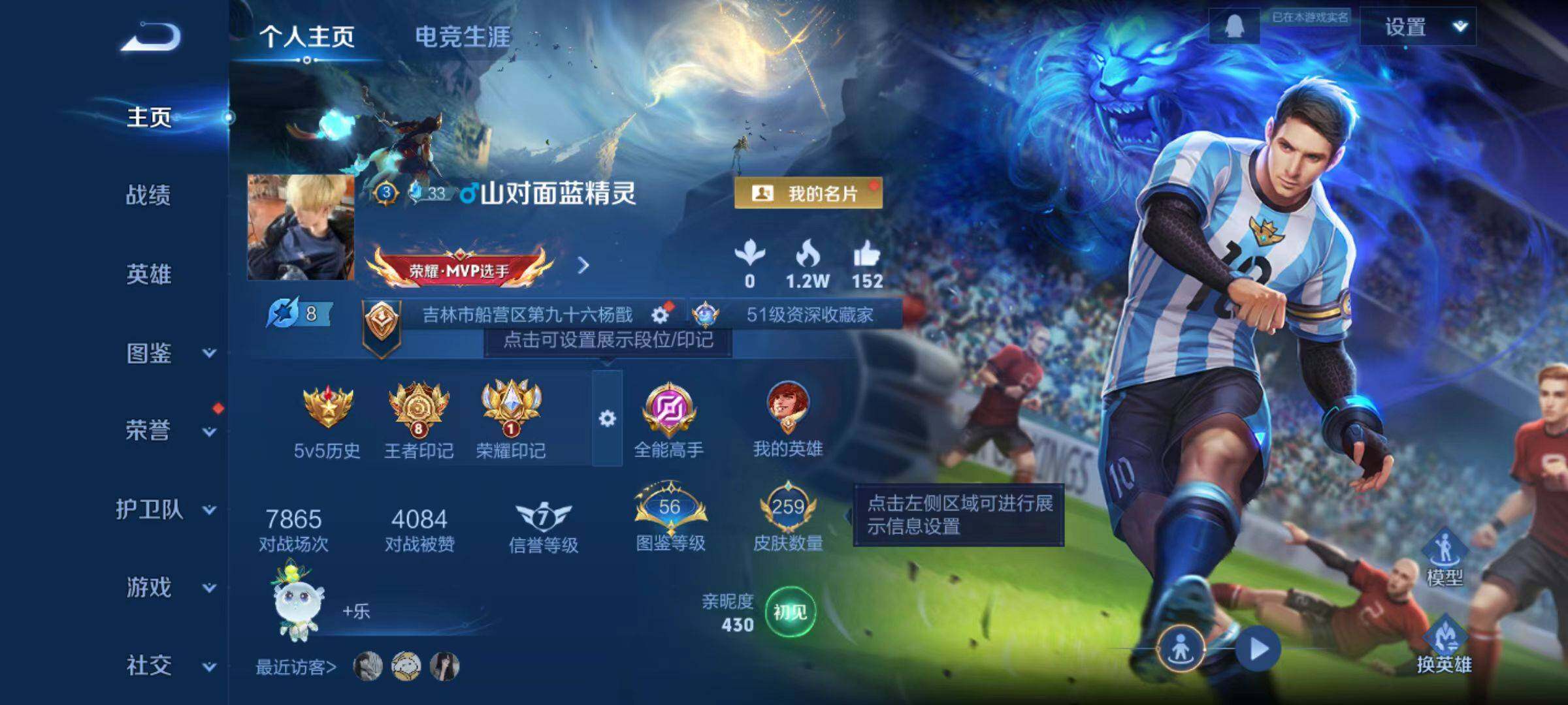 - PX_2107339-实名: 可修改 贵族等级: V4 英雄数: 97 皮肤数: 82 珍品传说: 大耳狗之梦 星传说: 未来机甲 传说皮: 末日机甲-孙尚香,音你心动-小乔 限定皮: 至美·乘鲤谣,鸣野蒿