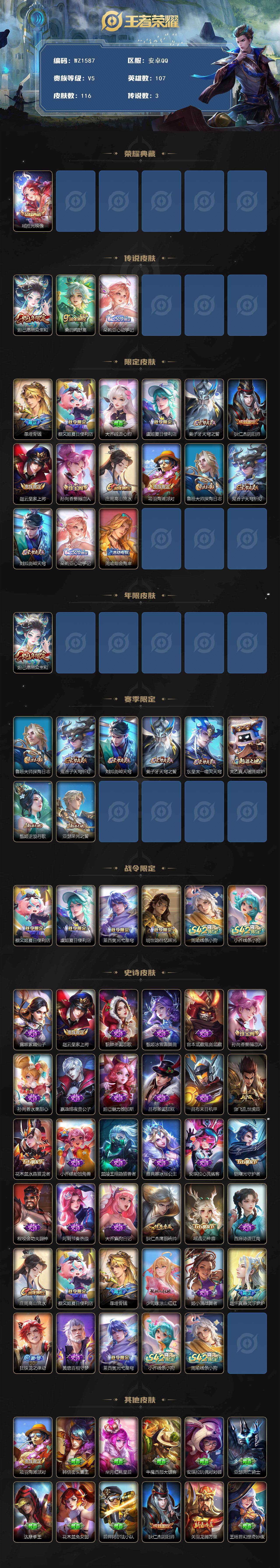 [16422285]安卓Q--116皮肤-1典藏皮肤-3传说-34史诗
