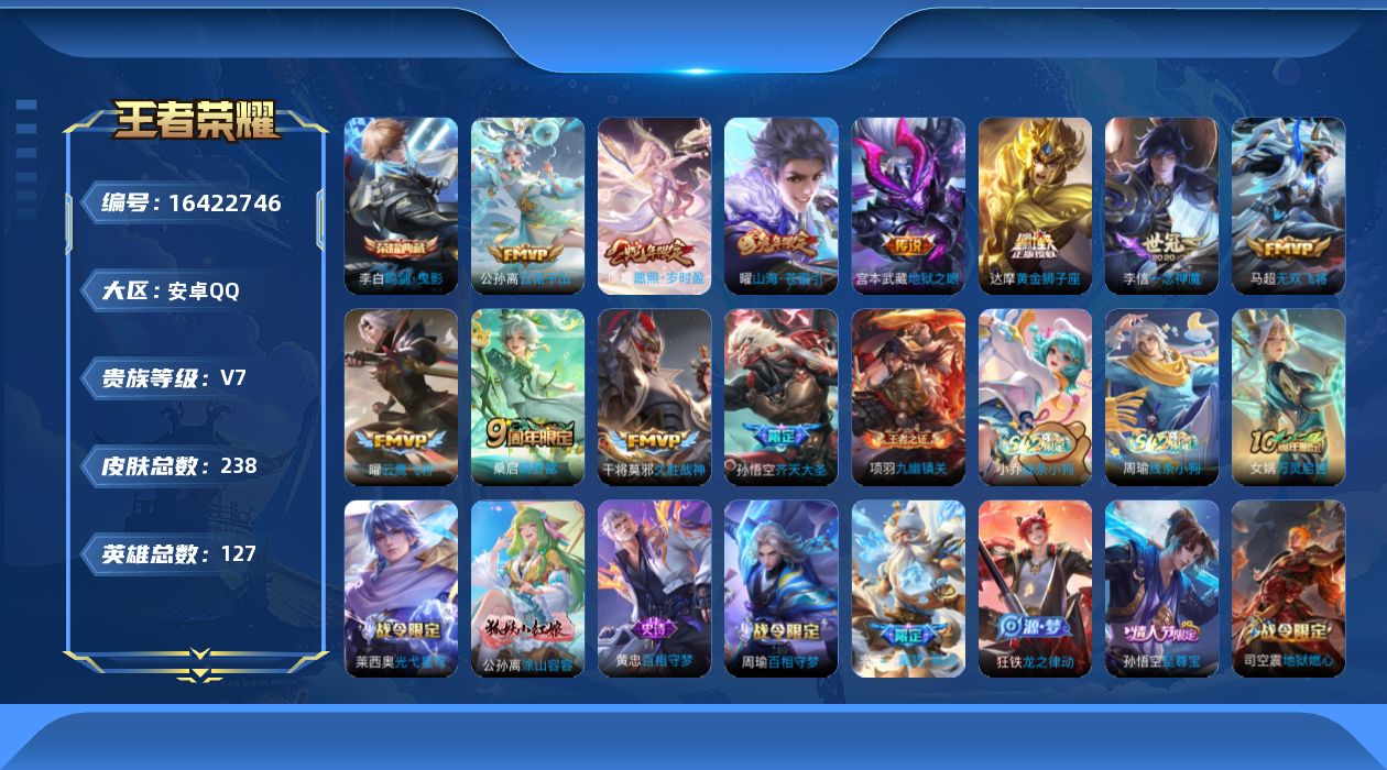 [16422746]安卓Q-V7-127英雄-238皮肤-1典藏皮肤-12传说-71史诗