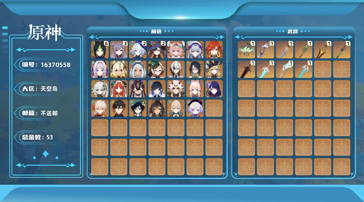 [16370558]60级/53黄/女主/29个五星角色/11个五星武器