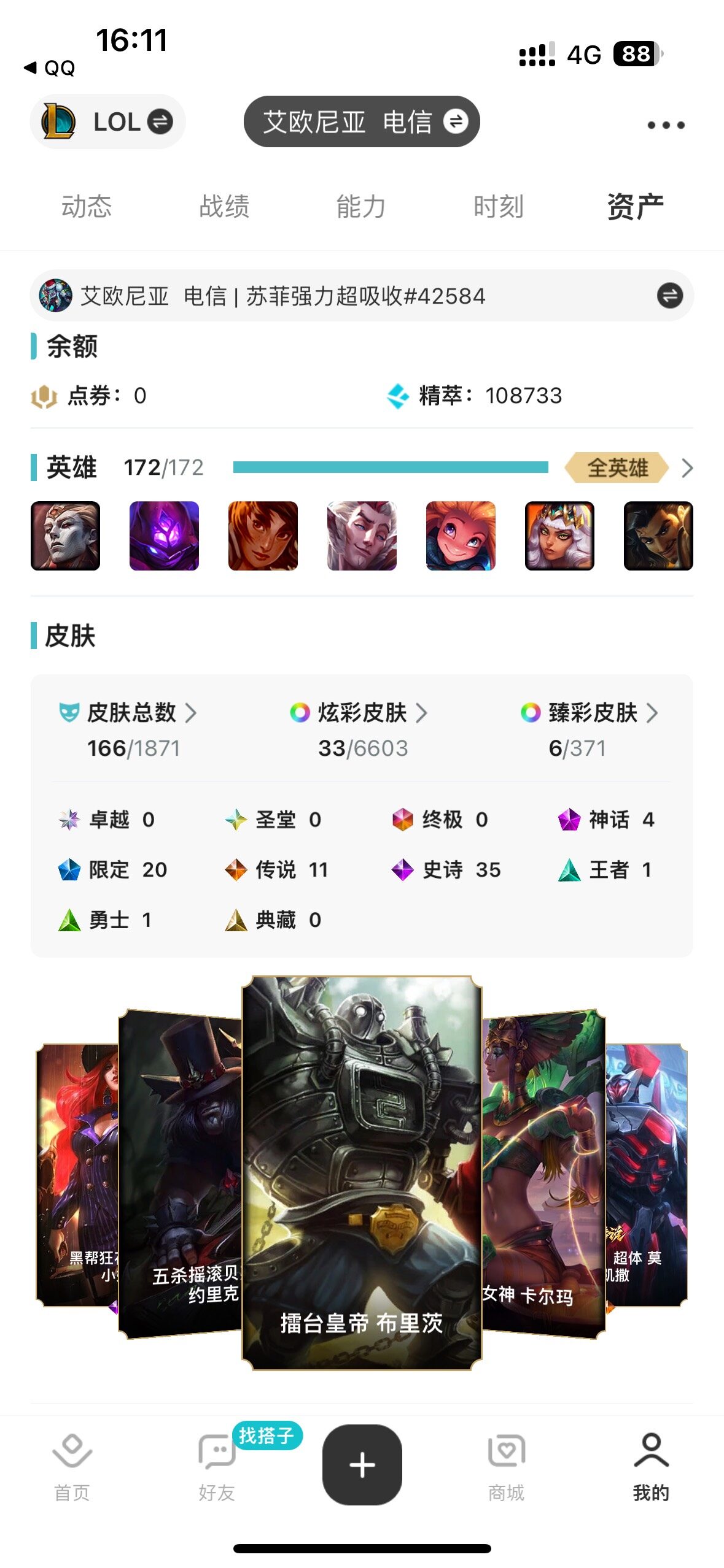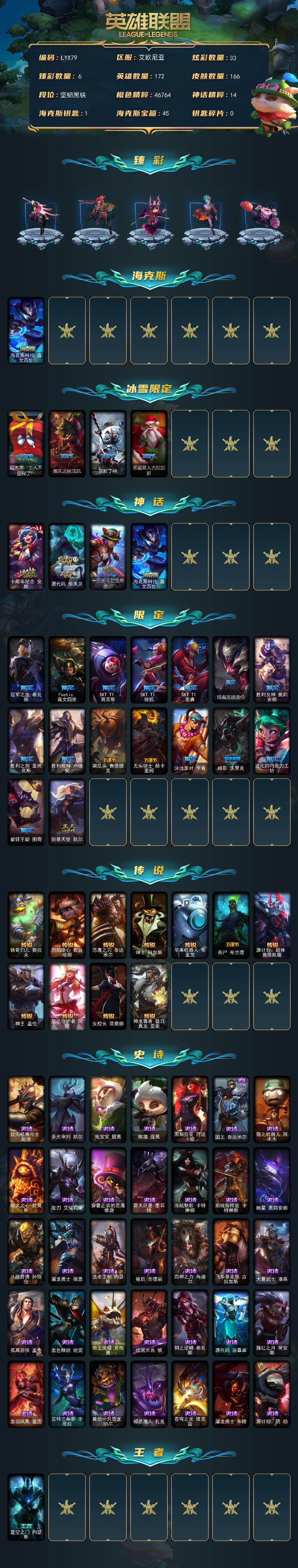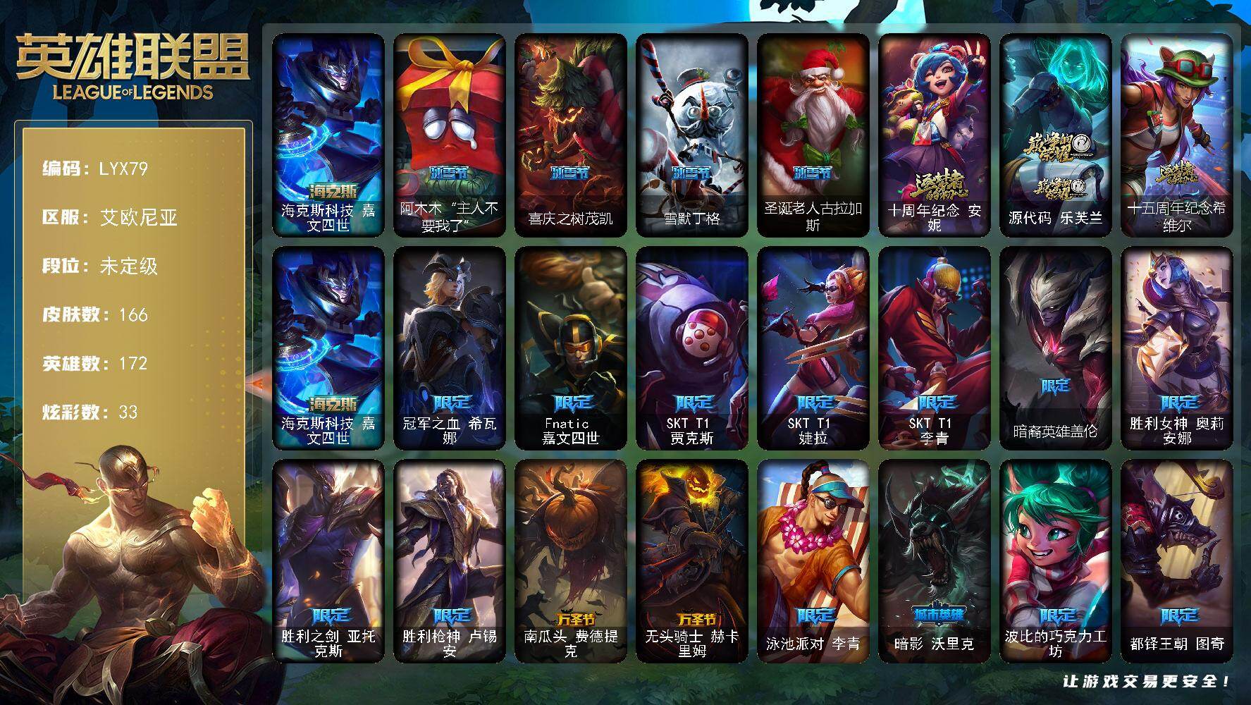 [16431312]【特价出售/店主推荐】未定级段位-172英雄-166皮肤-33炫彩-0终极-4神话-20限定-11传说-35史诗