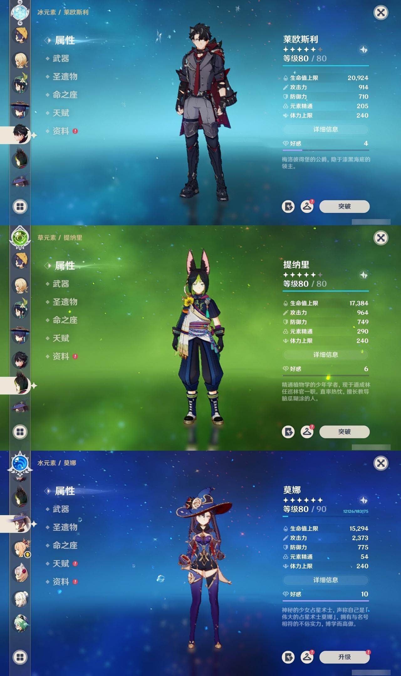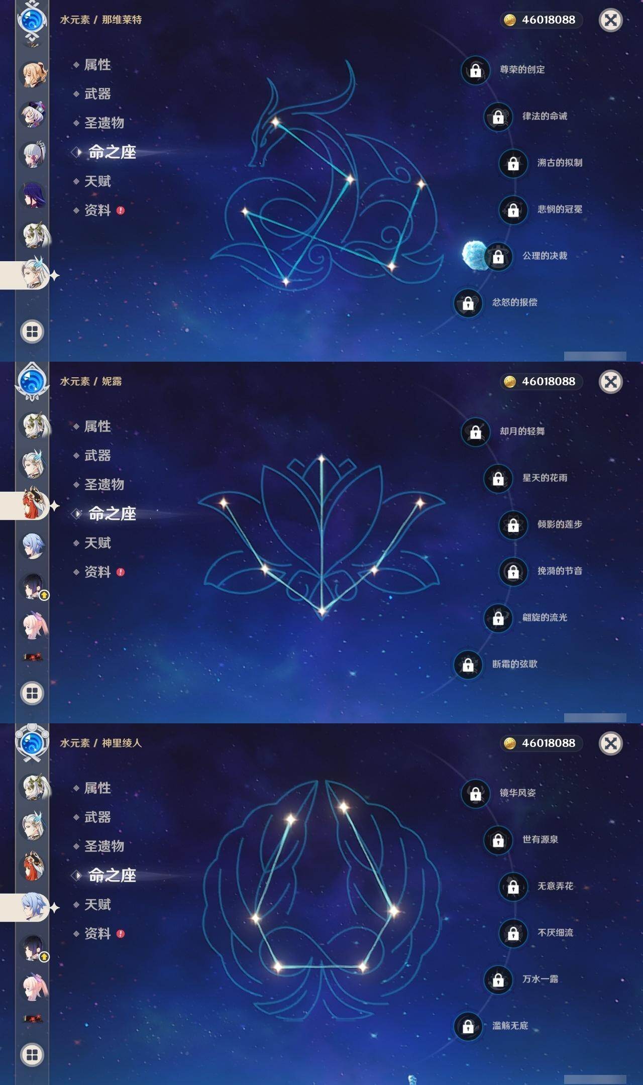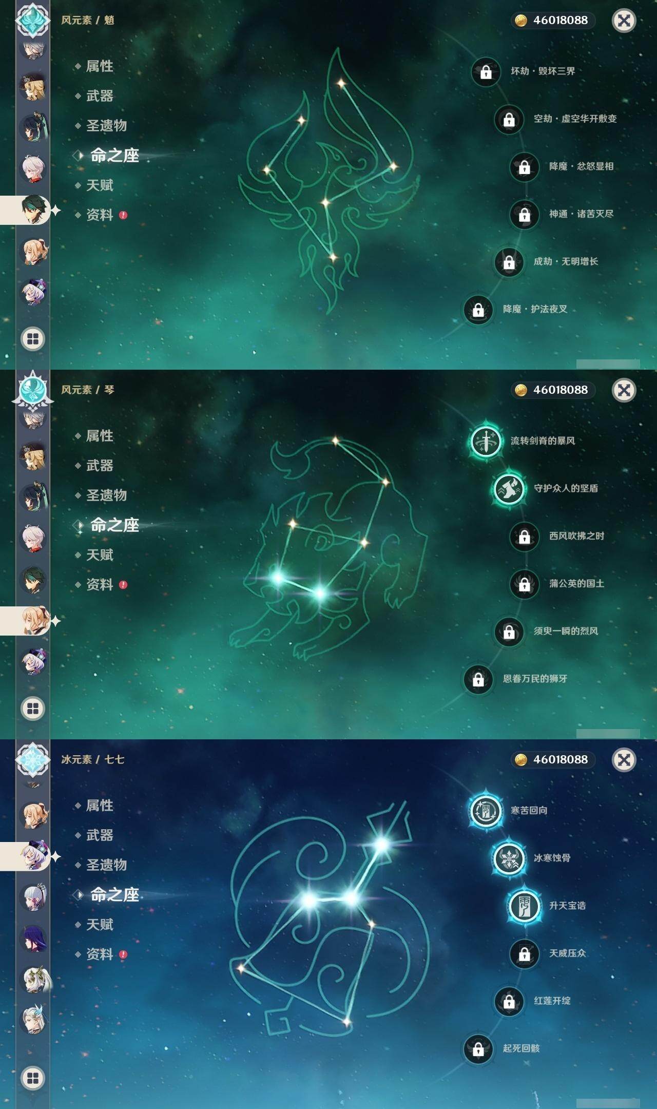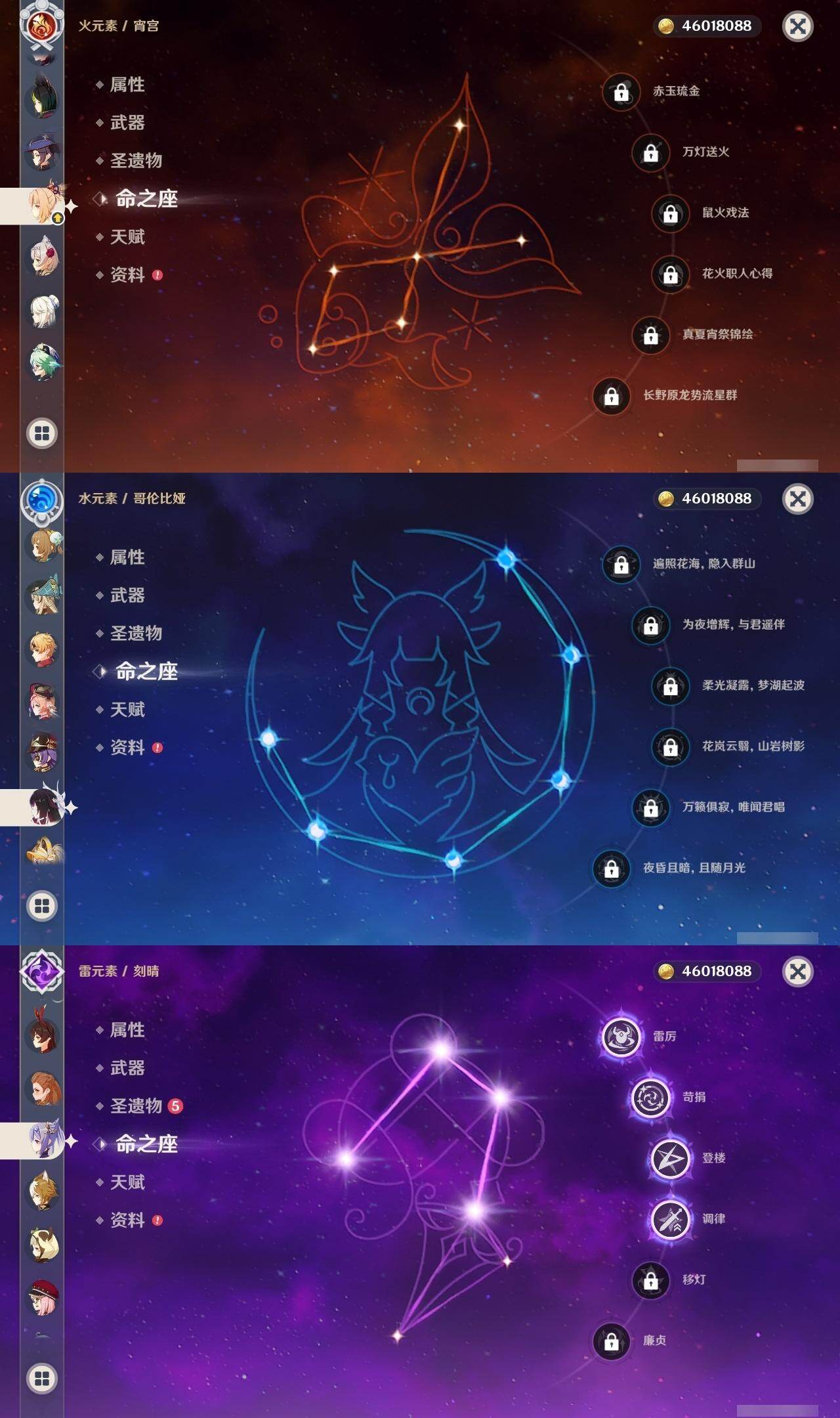 0命阿蕾奇诺,0命闲云,0命娜维娅,2命芙宁娜,0命莱欧斯利,0命那维莱特,0命迪希雅,0命流浪者,0命纳西妲,0命妮露,1命提纳里,1命夜兰,0命神里绫人,0命八重神子,0命雷电将军,1命枫原万叶,0命神里绫华,0命钟离,1命胡桃,0命魈,0命宵宫,0命温迪,0命珊瑚宫心海,4命刻晴,3命七七,2命琴,0命莫娜,满命迪卢克,0命希诺宁,0命恰斯卡,0命玛薇卡,0命茜特菈莉,0命瓦雷莎,0命哥伦比娅,精1裁断,精1静水流涌之辉,精1裁叶萃光,精1圣显之钥,精1神乐之真意,精1息灾,精1飞雷之弦振,精1雾切之回光,精1苍古自由之誓,精1无工之剑,精2护摩之杖,精1四风原典,精1和璞鸢,精2天空之脊,精1阿莫斯之弓,精2天空之刃,精1天空之卷,精1风鹰剑,精1狼的末路