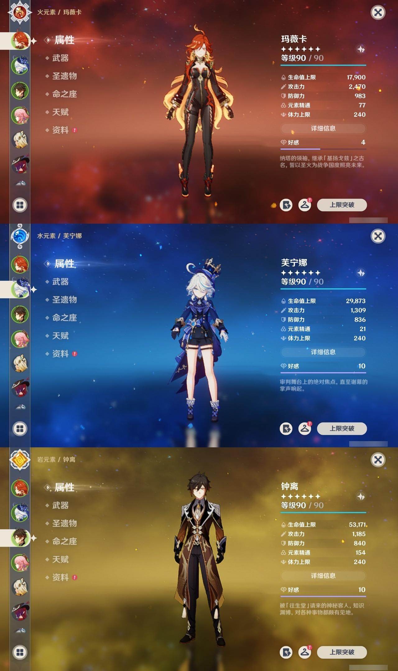 钟离,八重神子,枫原万叶,魈,琴,七七,神里凌华,雷电将军,珊瑚宫心海,胡桃,迪卢克,温迪,莫娜,宵宫,刻晴