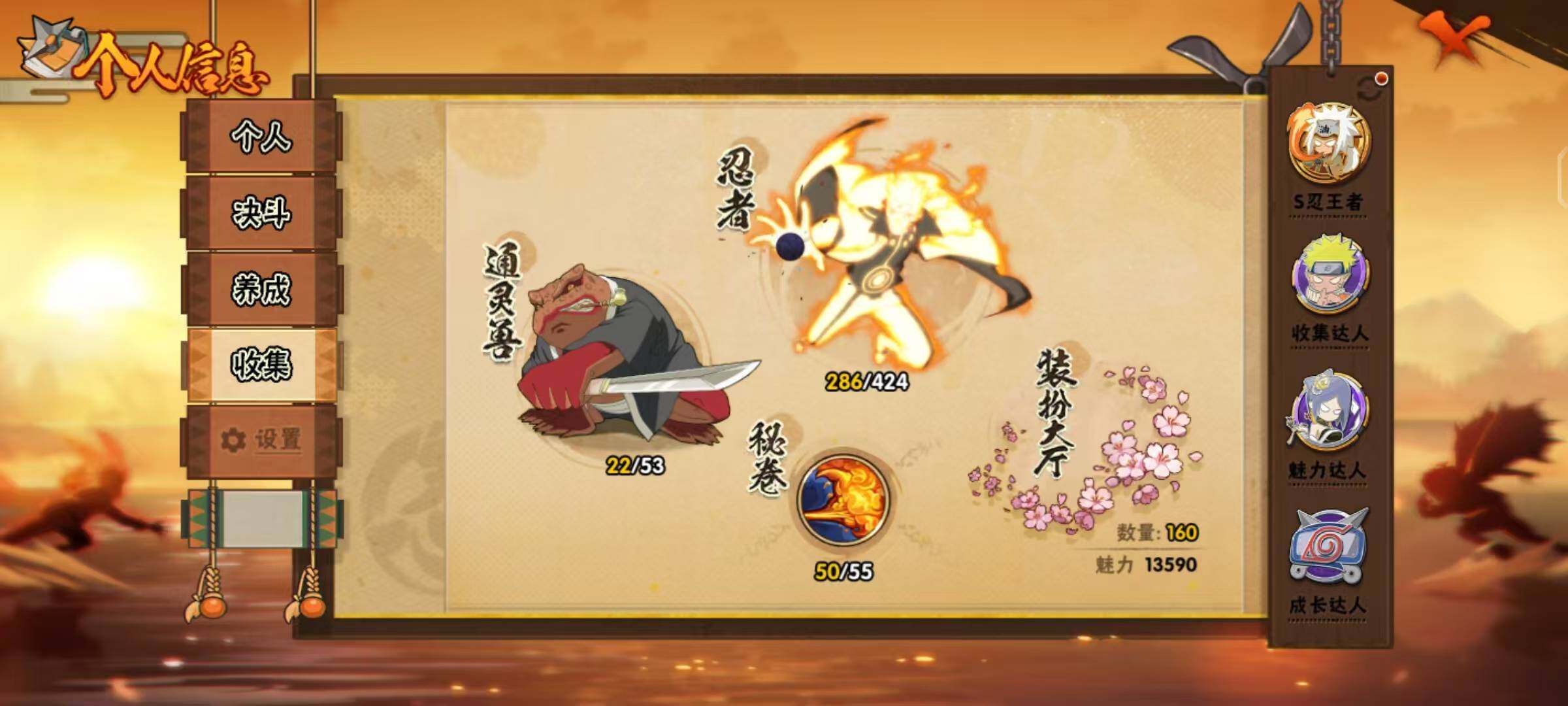 - [16329602]23S级忍者数-48A级忍者数 秽土柱间68片,带土62片,罗莎83片,连体王者v8 【S级忍者】:宇智波鼬「秽土转生」(3星),宇智波斑「秽土转生·解」(3星),春野樱「忍界大战」(3星),宇智波带土「忍界大战」(3星),艾「忍界大战」(3星),宇智波鼬「须佐能乎」(3星),宇智波止水「须佐能乎」(3星),旗木卡卡西「须佐能乎」(3星),宇智波斑「木叶创立」(3星),自来也「舞之豪杰」(3星),大蛇丸(3星),自来也「传说中的三忍」(3星),波风水门(3星),药师兜「仙人模式」(3星),漩涡鸣人「九喇嘛连结」(3星),迈特凯「死门」(3星),佩恩「天道」(3星),佩恩·天道「超」(3星),宇智波佐助「永恒万花筒」(3星),宇智波斑 「白面具」(3星宇智波斑「白面具」),波风水门「九喇嘛连结」(3星),宇智波斑「五影会谈」(3星),漩涡鸣人·宇智波佐助(3星) 【A级忍者】:艾「青年」(2星),长门「青年」(2星),波风水门「青年」(2星),波风水门「新春限定」(2星),达鲁伊「博人传」(2星),迪达拉(2星),迪达拉「秽土转生」(2星),奇拉比(2星),奇拉比「忍界大战」(2星),飞段(4星),飞段「死司凭血」(2星),干柿鬼鲛(5星),漩涡博人「桃式显现」(2星),漩涡鸣人「九尾查克拉」(2星),机械鸣人「初始形态」(2星),迈特凯(5星),旗木卡卡西「幻之真容」(2星),桃地再不斩「漂泊武士」(2星),桃地再不斩「秽土转生」(2星),我爱罗「疾风传」(4星),我爱罗「忍界大战」(2星),蝎(3星),蝎「绯流琥」(2星),猿飞阿斯玛(4星),宇智波止水(2星),宇智波止水「新春限定」(2星),宇智波鼬(2星),宇智波鼬「新春限定」(2星),宇智波鼬「夏日限定」(2星),宇智波佐助「须佐能乎」(2星),宇智波佐助「疾风传咒印」(2星),宇智波佐助「万花筒写轮眼」(2星),宇智波佐助「侠隐江湖」(2星),照美冥「五代目水影」(2星),日向宁次「忍界大战」(2星),日向雏田「最终章」(2星),宇智波带土「漂泊浪客」(2星),长十郎「六代目水影」(2星),卑留呼「火之意志继承者」(2星),李洛克「忍界大战」(2星),黑土「博人传」(2星),秋道丁次「忍界大战」(2星),千代「近松十人卫」(2星),神农「羁绊」(2星),宇智波泉奈(2星),大野木「侠隐江湖」(2星),