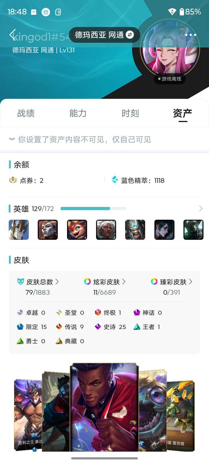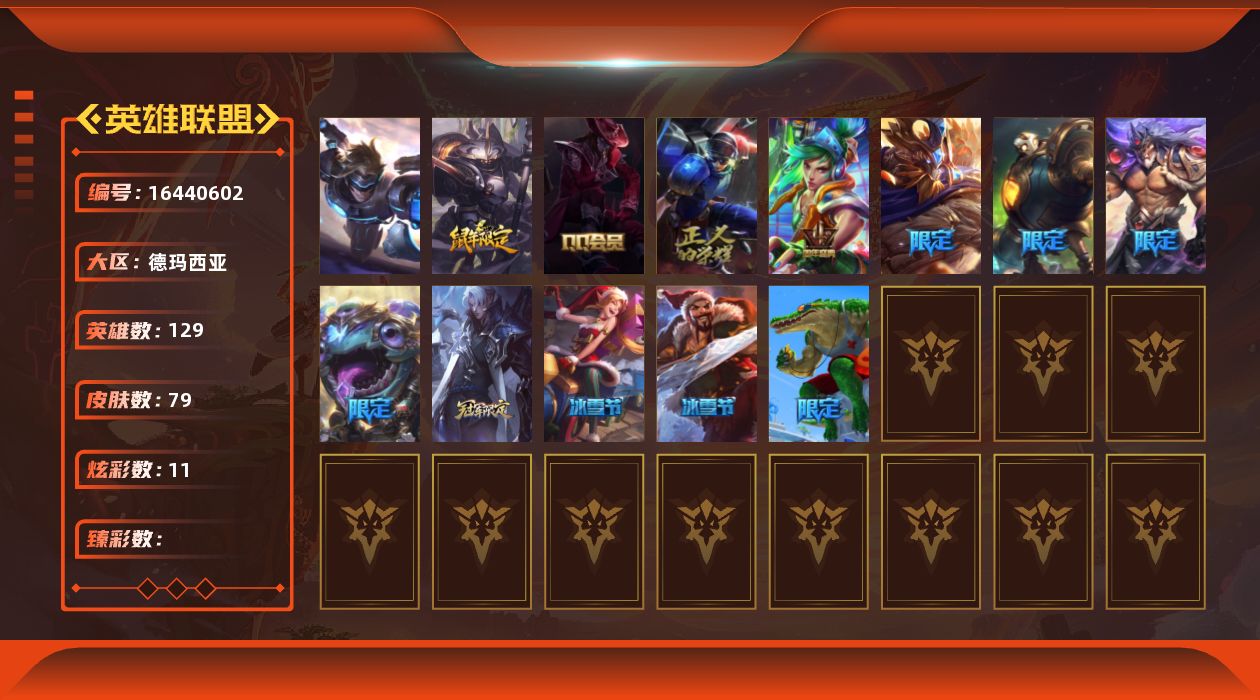 [16440602]【店主推荐捡漏号】未定级段位-129英雄-79皮肤-11炫彩-1终极-0神话-15限定-9传说-25史诗