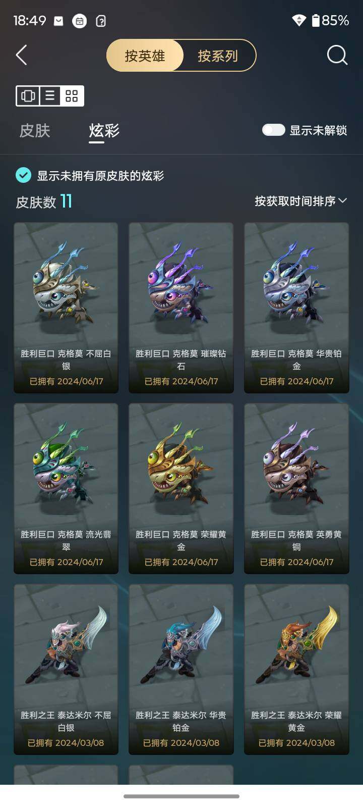 【限定皮肤】:EDG厄斐琉斯,电玩勇者锐雯,胜利之树茂凯,胜利机器人布里茨,胜利之王泰达米尔,胜利巨口克格莫,灵魂收割者索拉卡,泳池派对雷克顿,红桃杰克崔斯特,防暴天使凯尔