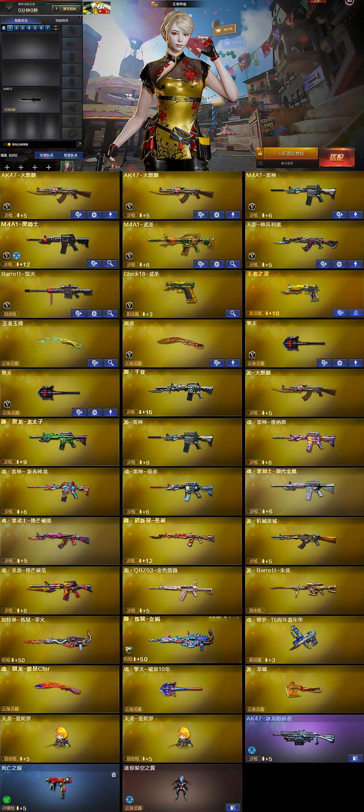 【英雄级武器】:AK47-火麒麟*2,M4A1-雷神,M4A1-黑骑士,M4A1-武圣,无影-神兵利器,Barrett-毁灭,Glock18-武圣,屠龙,擎天*2