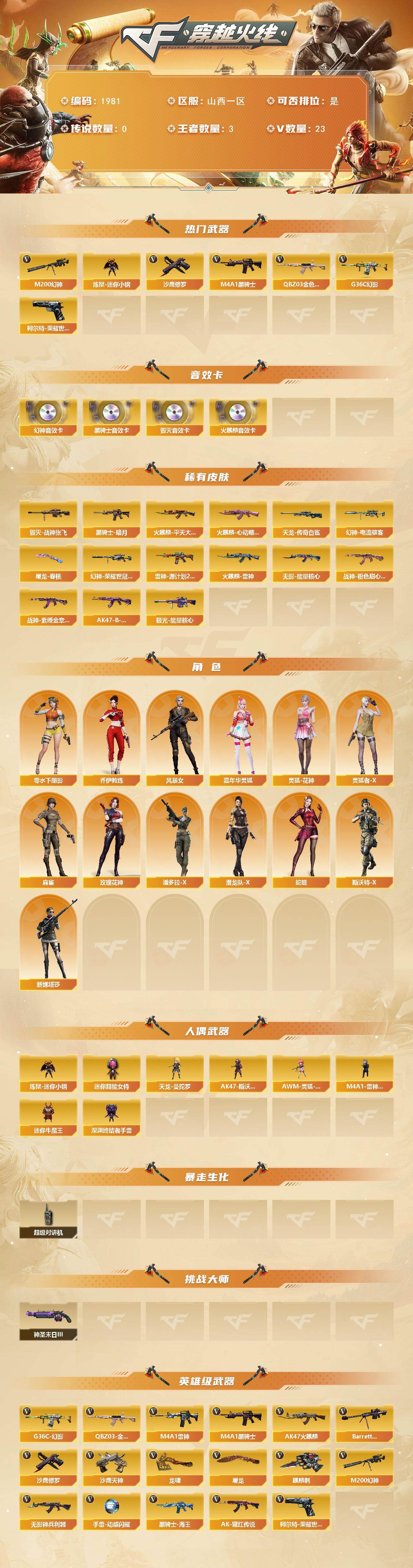 [16446742]山西一区-23V-3王者武器数-0炫金武器数