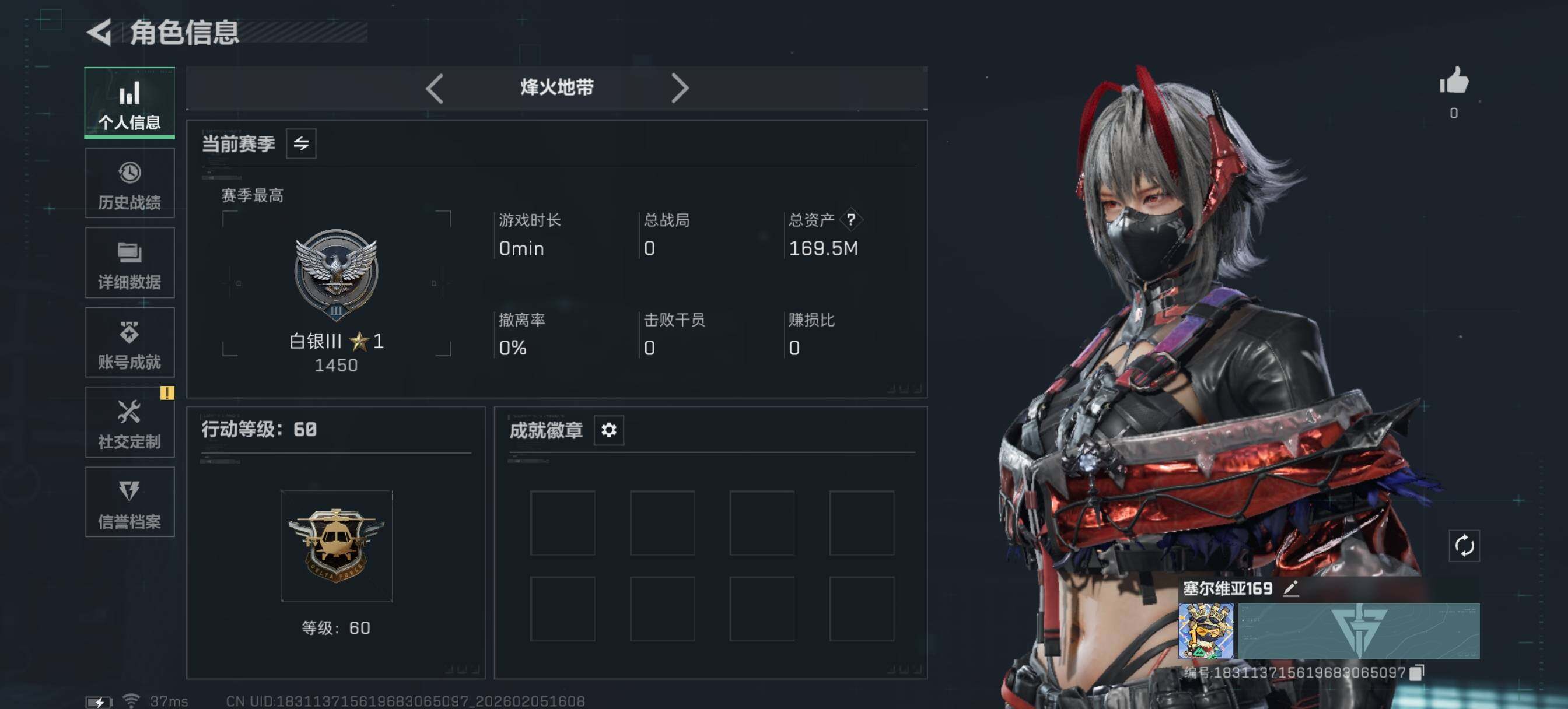 [16446916]【特价出售/店主推荐】169m总资产-106827k哈伏币-60烽火等级-白银-4战场等级-无军衔