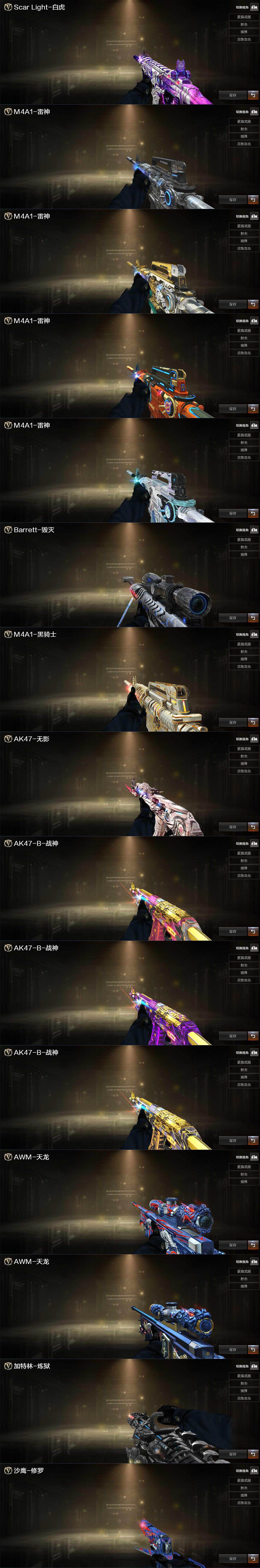 【音效卡】:AK47-火麒麟音效卡,M4A1-雷神音效卡,M4A1-黑骑士音效卡,Barrett-毁灭音效卡