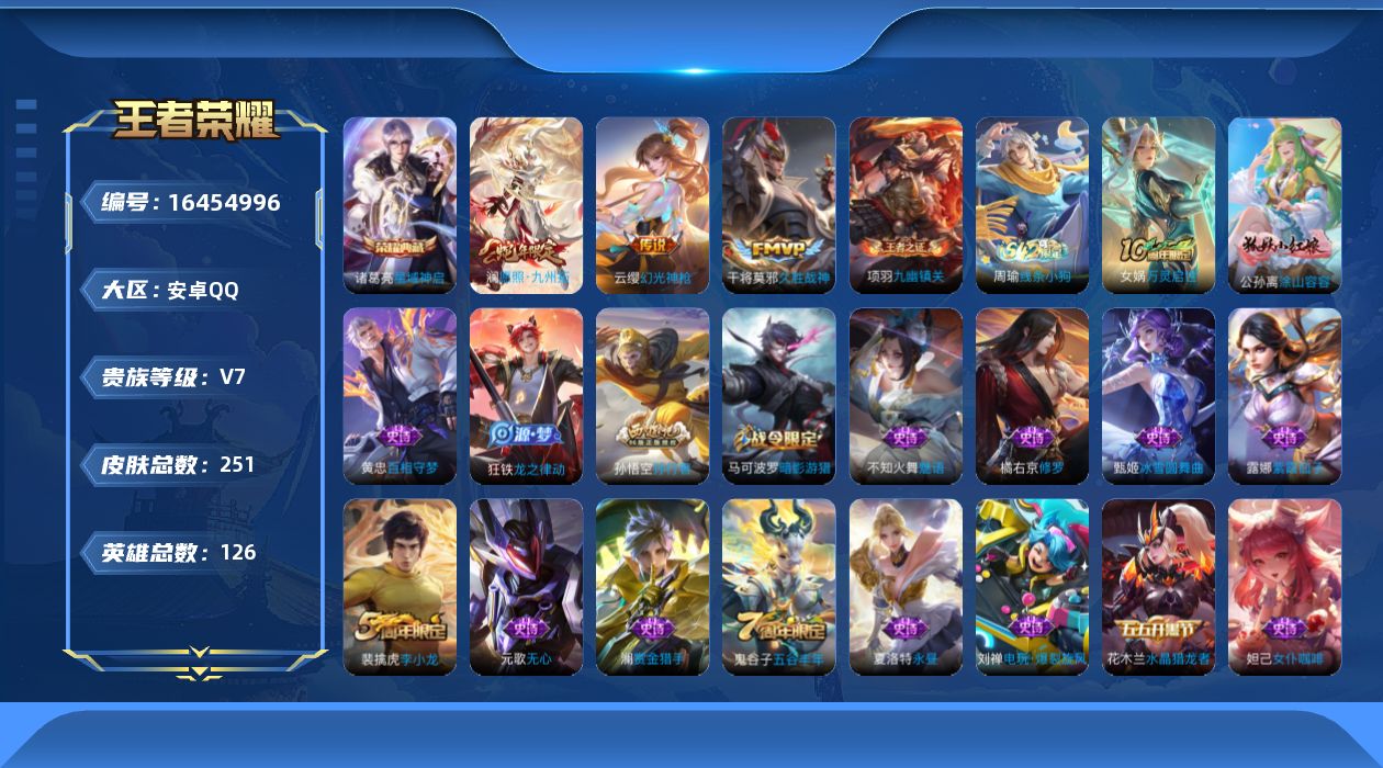 [16454996]【特价急出/详情看图】安卓Q-V7-至尊星耀III段位-126英雄-251皮肤-1典藏皮肤-4传说-63史诗