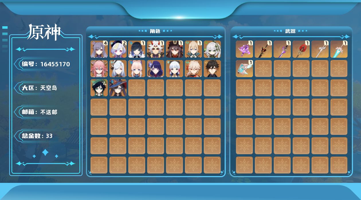 [16455170]58级/33黄/女主/16个五星角色/7个五星武器