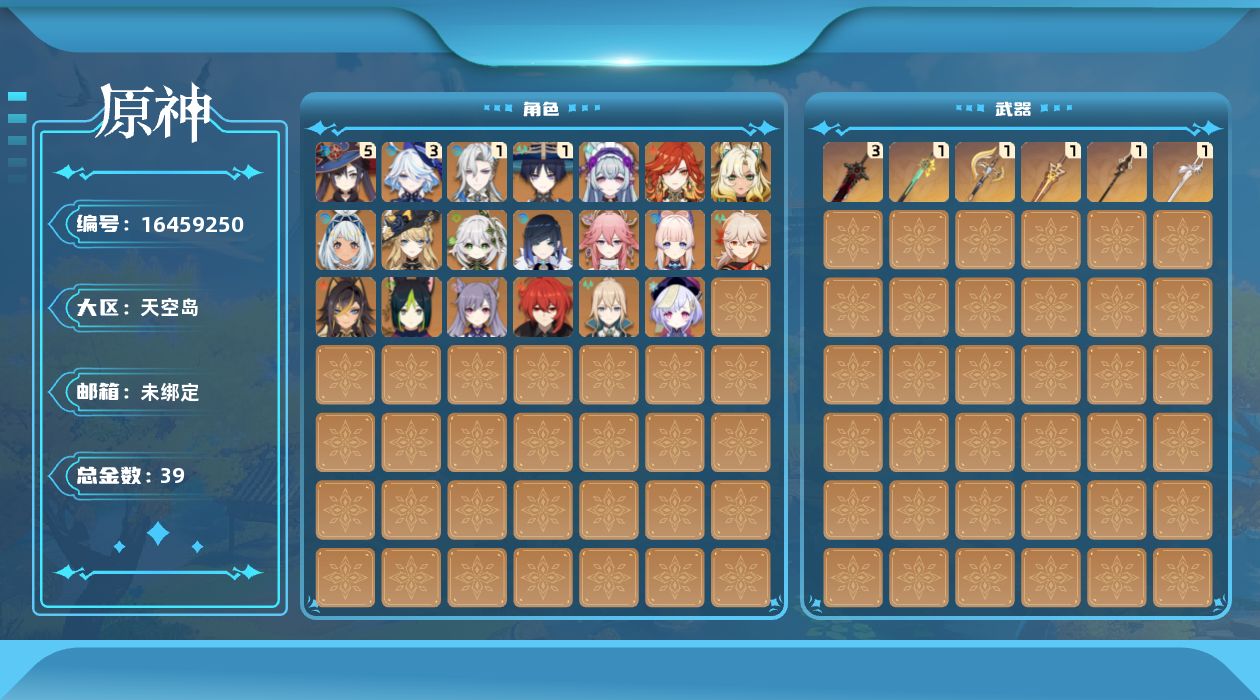 [16459250]59级/39黄/女主/20个五星角色/7个五星武器