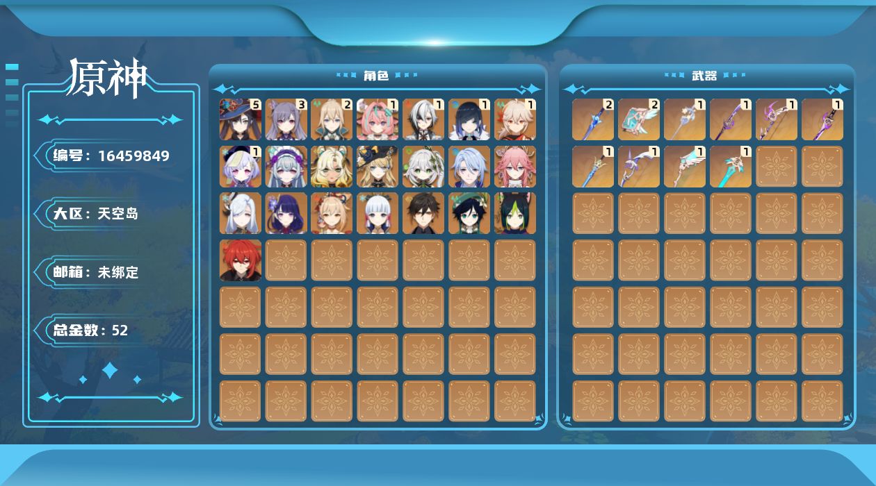 [16459849]60级/52黄/女主/23个五星角色/11个五星武器