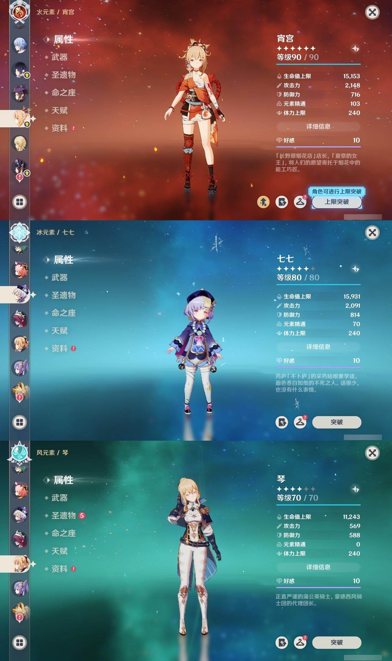 枫原万叶,钟离,申鹤,神里凌华,八重神子,雷电将军,莫娜,宵宫,七七,琴,刻晴,温迪,迪卢克