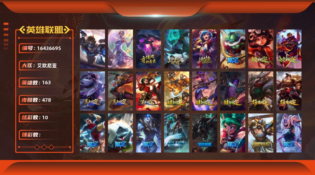 [16436695]未定级段位-163英雄-478皮肤-10炫彩-2终极-3神话-95限定-47传说-116史诗