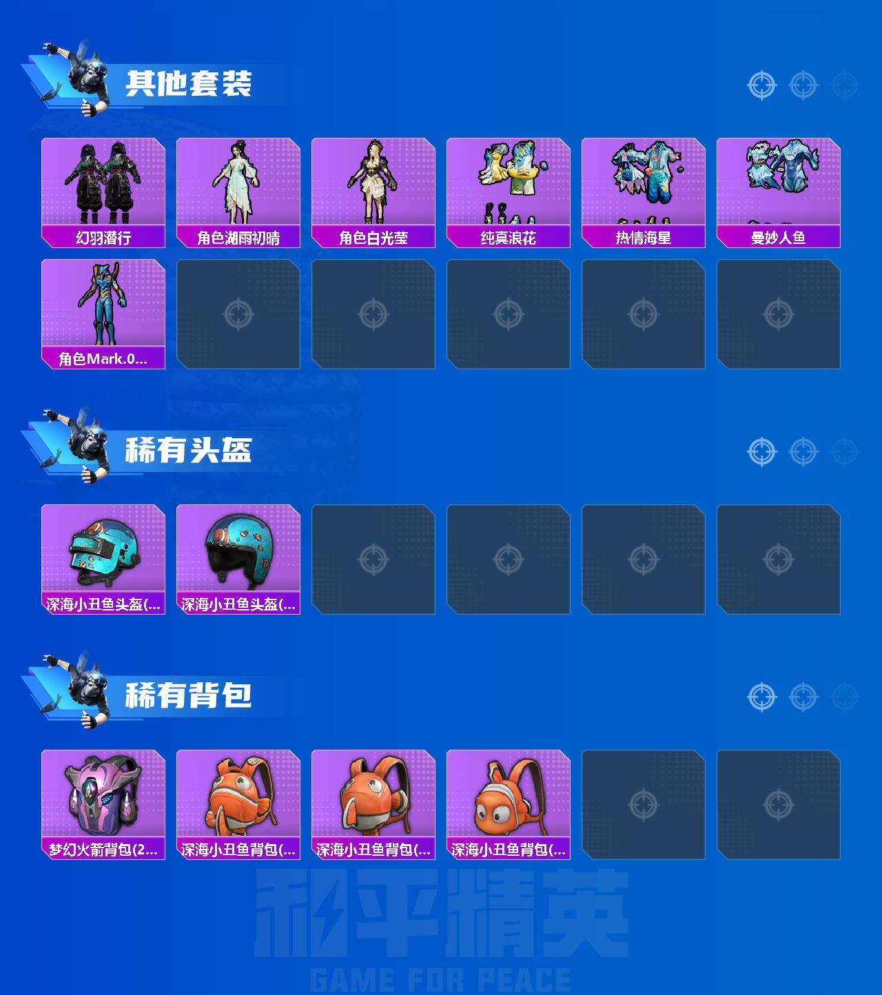套装-都市猎人,套装-深海小丑鱼,套装-鹰眼刺客,套装-呆萌铁蟹,套装-迅捷狂鲨