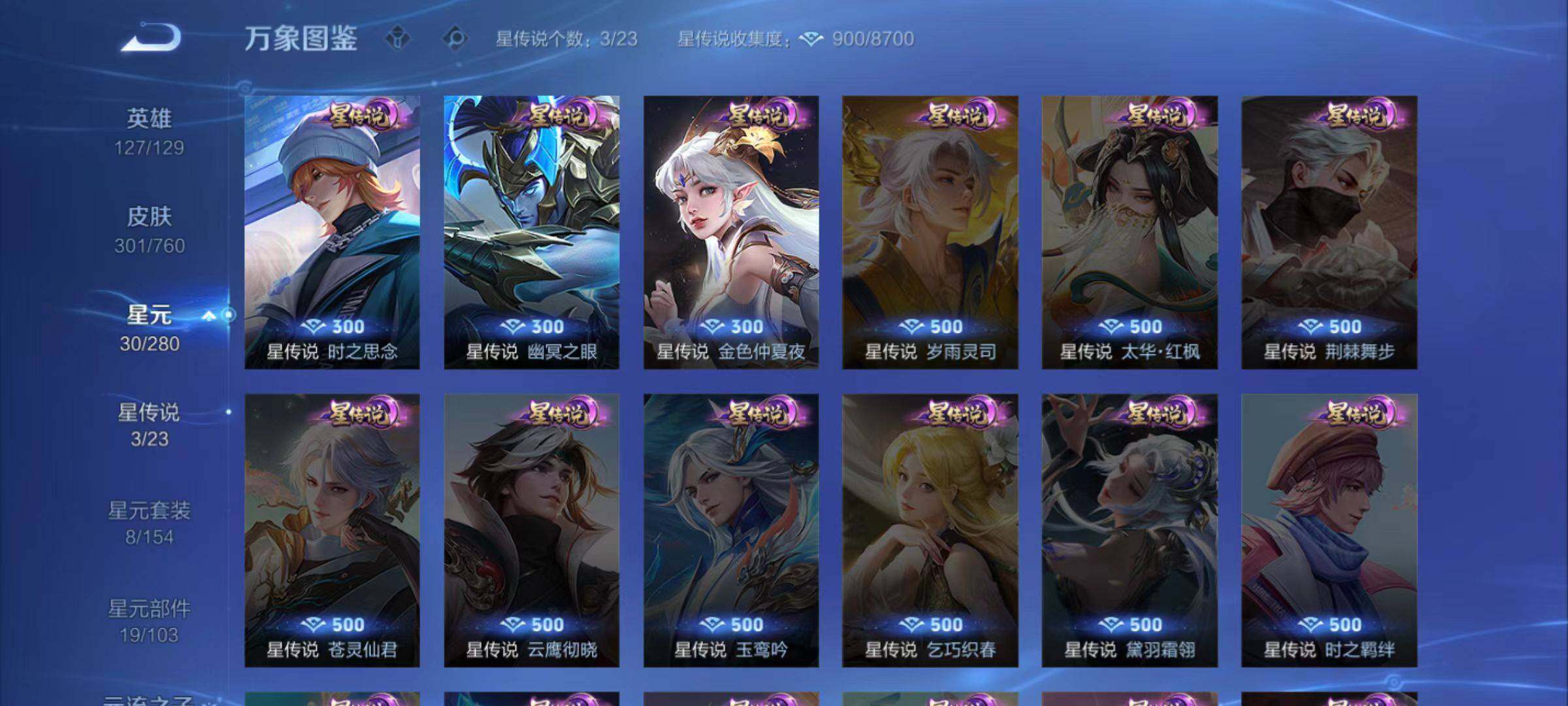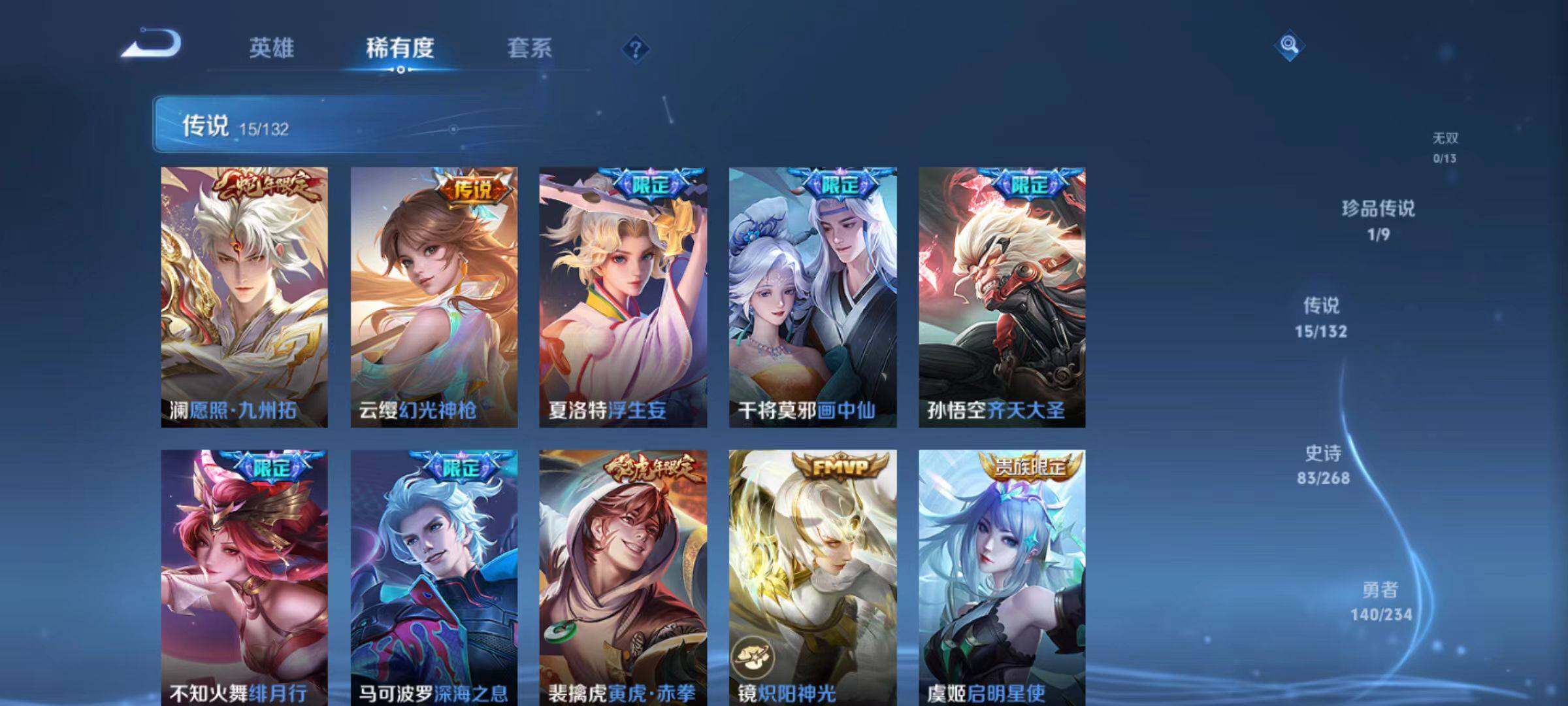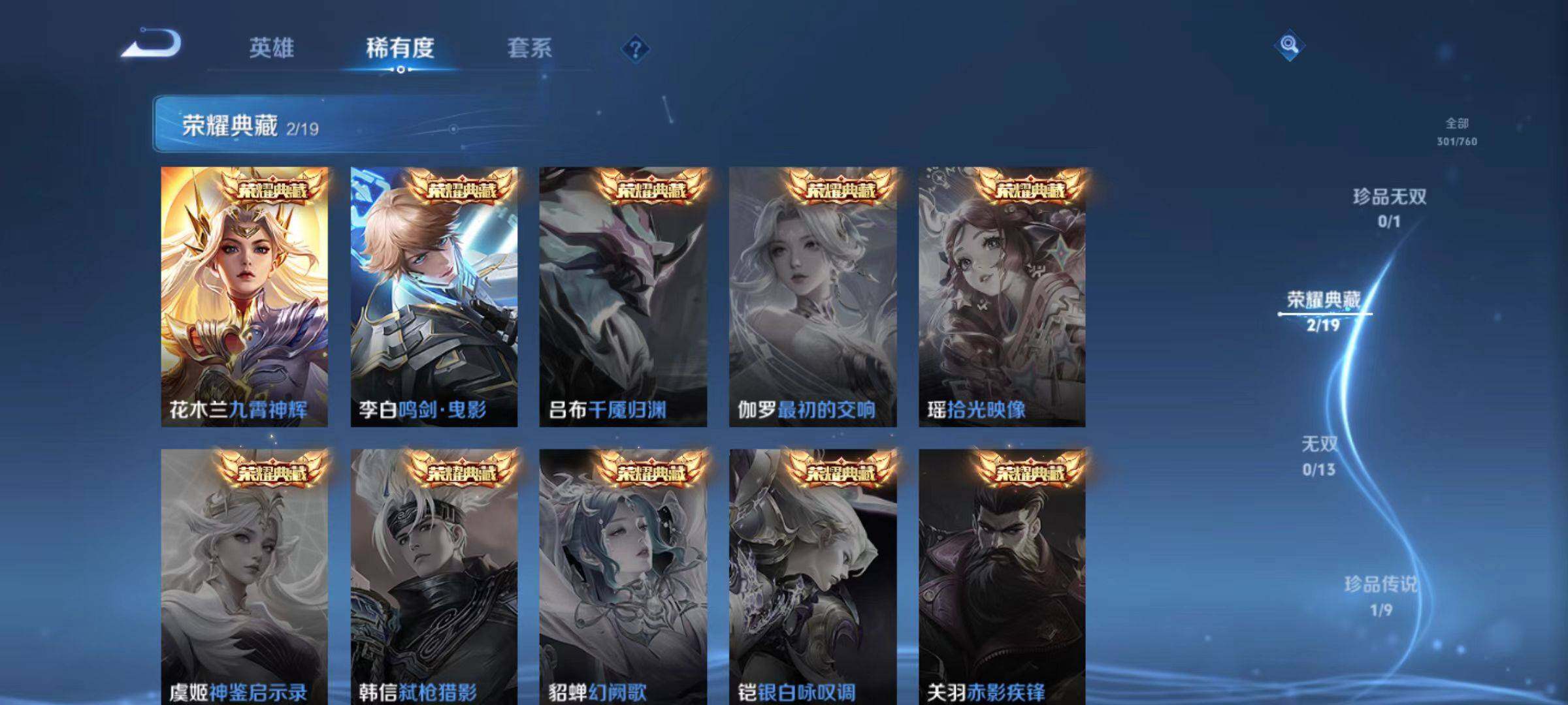 [16477434]安卓Q-V8-至尊星耀IV段位-127英雄-301皮肤-2典藏皮肤-1珍品传说-15传说-82史诗