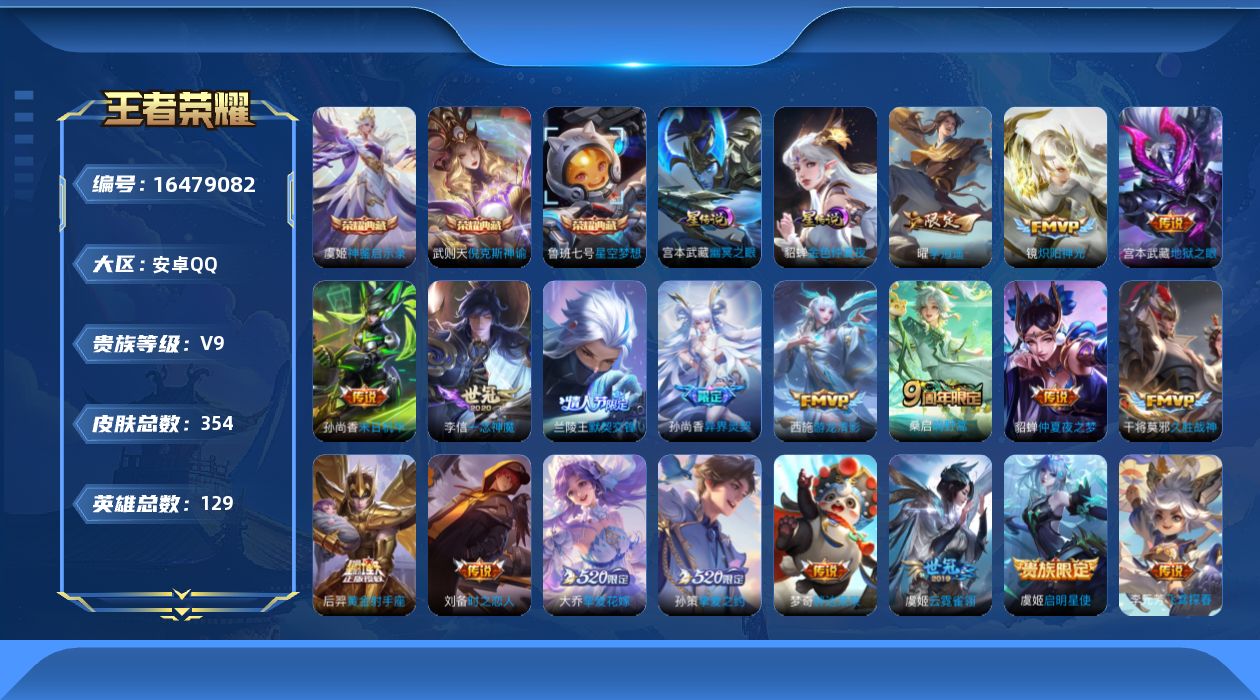 [16479082]【店主推荐捡漏号!可直接换绑】安卓Q-V9-永恒钻石II段位-129英雄-354皮肤-3典藏皮肤-1典藏英雄-20传说-104史诗-2星元