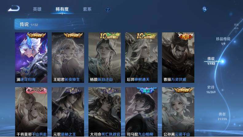 【其他皮肤】:项羽海滩派对,达摩大发明家,赵云忍炎影,牛魔西部大镖客,亚瑟死亡骑士,达摩拳王,甄姬花好人间,狄仁杰阴阳师,马可波罗潮玩牛仔,钟馗虚灵犬护,白起死霸装,甄姬逆浪荇歌,孙策百相守梦,庄周锦麟游梦,莱西奥踏浪烽翎,鬼谷子克喵,哪吒罗小黑战记,亚瑟荣光之誓,明世隐往忆晖光,艾琳鹤鸣心笺,虞姬溯影追猎,后羿精灵王,杨戬埃及法老,女娲尼罗河女神,裴擒虎街头旋风,司马懿魇语军师,马超幸存者,司空震启蛰