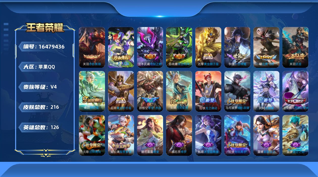 [16479436]苹果Q--216皮肤-1典藏皮肤-1珍品传说-9传说-67史诗