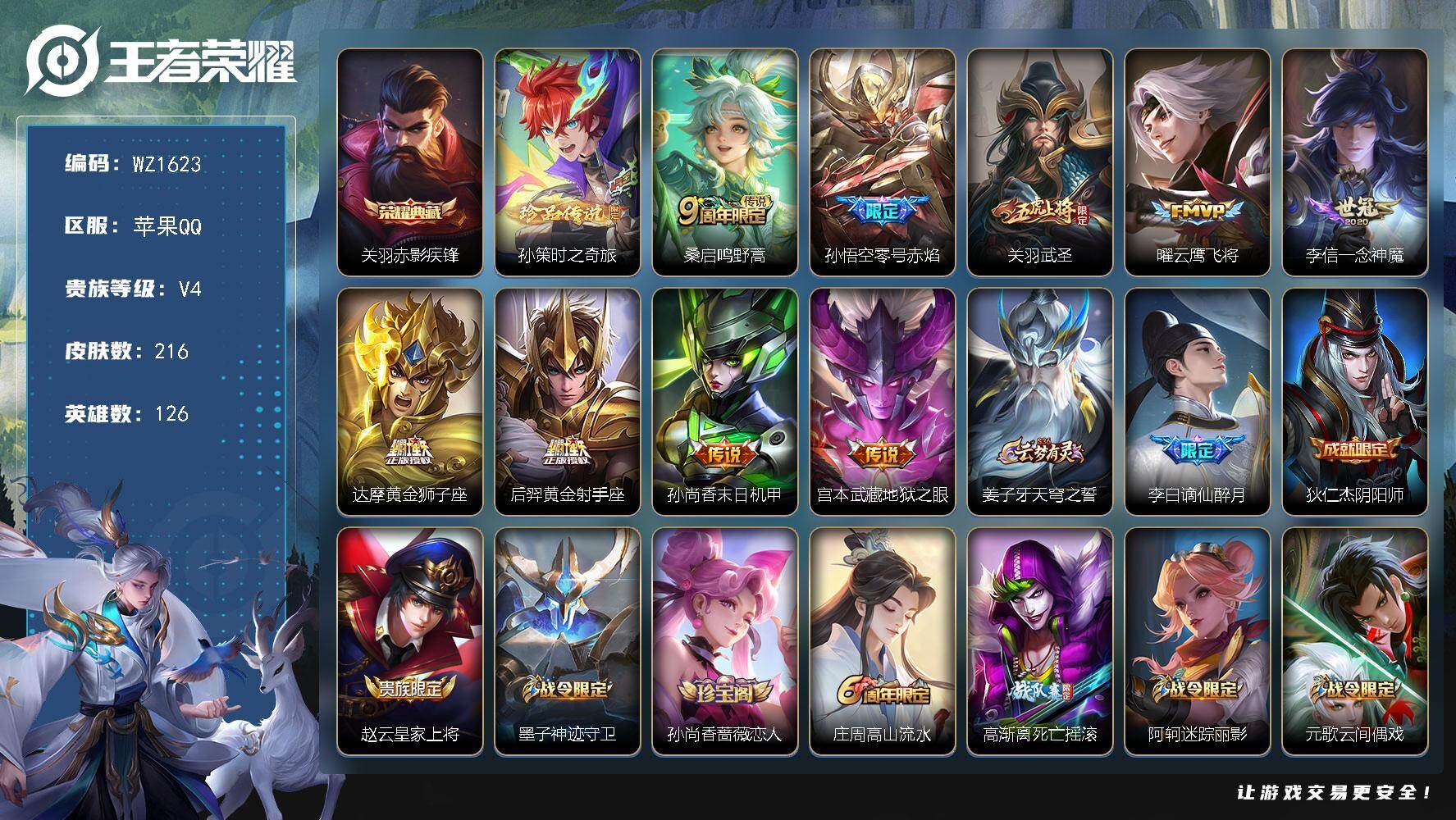 - [16363203]【店主推荐捡漏号!可直接换绑】苹果Q-V7-至尊星耀V段位35段打野-127英雄-332皮肤-1典藏皮肤-16传说-88史诗-3星元 【英雄全皮】:太乙真人全皮,影全皮 【荣耀典藏】:诸葛亮星域神启 【传说皮肤】:后羿神树通天,云缨幻光神枪,桑启鸣野蒿,李白诗剑行,裴擒虎寅虎赤拳,西施游龙清影,兰陵王默契交锋,镜炽阳神光,孙悟空零号赤焰,曜云鹰飞将,李信一念神魔,干将莫邪久胜战神,百里玄策白虎志,诸葛亮武陵仙君,宫本武藏地狱之眼,狄仁杰超时空战士 【限定皮肤】:姜子牙天穹之誓,狄仁杰阴阳师,赵云皇家上将,墨子神迹守卫,嬴政优雅恋人,嬴政白昼王子,孙尚香蔷薇恋人,庄周高山流水,白起夜都怪侠,芈月重明,芈月幻夜卜梦,吕布猎兽之王,元歌云间偶戏,元歌无心,夏侯惇朔风刀,典韦穷奇,狄仁杰魔术师,狄仁杰万华元夜,达摩星际陆战队,达摩沙漠行僧,项羽海滩派对,老夫子醍醐杖,老夫子航海奇遇记,关羽冰锋战神,程咬金演武夺筹,韩信逐梦之影,韩信飞衡,韩信傲雪梅枪,兰陵王默契交锋,兰陵王金庭之子,亚瑟潮玩骑士王,孙悟空零号赤焰,牛魔御旌,后羿圣弓游侠,李元芳云中旅人,钟馗驱傩正仪,杨玉环遇见飞天,干将莫邪真爱魔法,雅典娜单词大作战,雅典娜黎明之约,蔡文姬繁星吟游,太乙真人饕餮,太乙真人华丽摇滚,鬼谷子原初探秘者,鬼谷子五谷丰年,诸葛亮武陵仙君,黄忠火炮绅士,苏烈千军破阵,百里玄策白虎志,百里玄策原初追逐者,弈星混沌棋,梦奇顽趣,公孙离玉兔公主,沈梦溪大漠名商,明世隐疑决卦,明世隐吟游魔法,裴擒虎李小龙,裴擒虎寅虎赤拳,裴擒虎擒涛扼浪,狂铁御狮,米莱狄御霄,米莱狄胡桃异想国,云中君纤云弄巧,云中君时之祈愿,盾山御銮,猪八戒猪悟能,上官婉儿梁祝,嫦娥拒霜思,西施玲珑珍味,蒙犽狂想玩偶喵,鲁班大师探海日志,镜匿光追影者,桑启海盐诗旅,戈娅驭风魔法,艾琳女武神,阿古朵江河有灵,张良古海寻踪,蒙恬荣光圣徽,鬼谷子天穹祈灯,姬小满妄想食味,沈梦溪龙舞盛年,刘邦剑破天穹,程咬金群星魔术团,镜青焰无极,周瑜熔金海岸 【年限皮肤】:百里玄策白虎志,韩信飞衡,裴擒虎寅虎赤拳 【赛季限定】:太乙真人饕餮,芈月重明,典韦穷奇,狂铁御狮,米莱狄御霄,牛魔御旌,盾山御銮,夏侯惇朔风刀,弈星混沌棋,明世隐疑决卦,老夫子醍醐杖,鬼谷子原初探秘者,狄仁杰万华元夜,程咬金演武夺筹,钟馗驱傩正仪,苏烈千军破阵,达摩沙漠行僧
