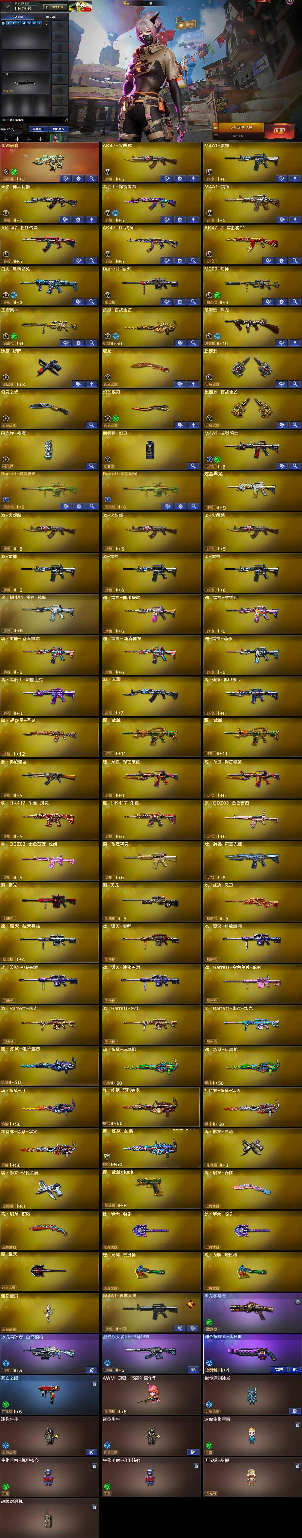 [16483108]北方大区-41V-1王者武器数-1炫金武器数 【传说武器】:传说破晓 【热门武器】:传说破晓,M200-幻神,死亡之眼,白虎-电玩蓝兔,汤姆逊-烈龙,沙鹰-修罗,炽芒蝶刃 【王者炫金武器】:炫金黑龙 【音效卡】:Barrett-碧霄极光音效卡,炼狱-百战金芒-庆典舞曲音效卡,柯尔特-百战金芒-庆典舞曲音效卡 【皮肤】:白虎-百战金芒 皮肤,金色蔷薇-电竞之星 皮肤,雷神-宠儿-2019MVP,M4A1-再燃火线,雷神-神秘按键 皮肤,毁灭-英雄计划 皮肤,战神-紫绶金章皮肤,AK47-B-常胜将军-曹操,AK47-B-常胜将军-刘备,AK47-B-常胜将军-孙权*2,轻型军用手斧-再燃火线 【角色】:隼,乔伊教练,修道士,暗夜-X,初恋灵狐,风暴女,虎妞,嘉年华灵狐,潘多拉-X,潘多拉-甜心教官,斯沃特-X,蜀雪,新娜塔莎,雪莉杨-摸金校尉,影武者-X 【人偶武器】:迷你宝贝,AWM-灵狐-15周年嘉年华,迷你深渊冰龙,迷你牛牛*2,迷你生化手雷,生化手雷-机甲核心*2,闪光弹-貂蝉 【暴走生化】:黑龙吞噬者,死亡之眼,超级对讲机 【挑战大师】:冰龙粉碎者-白马银枪,激光毁灭者III-白马银枪,神圣爆裂者-末日III 【英雄级武器】:AK47-火麒麟,M4A1-雷神,无影-神兵利器,黑武士-锦绣游龙,M4A1-猎神,AK-47-猩红传说,AK47-B-战神,AK47-B-常胜将军,白虎-电玩蓝兔,Barrett-毁灭,M200-幻神,王者风神-觉醒版,炼狱-百战金芒,汤姆逊-烈龙,沙鹰-修罗,屠龙,麒麟刺,幻灵之锋,炽芒蝶刃,麒麟刺-百战金芒,闪光弹-夜魔,烟雾弹-幻灵,M4A1-赤狱骑士,Barrett-碧霄极光*2 【道具】:BS战队炫彩背包,云山科技背包,亚洲杯纪念炫彩背包,冰冰企鹅背包-猛男专用,女皇终结者-背包,炫彩背包,百战金芒炫彩背包,超级背包,圣拳猎手-炽雪,女皇终结者-魔龙之吻,救世主-黑桃战神,绿色巨人,灵魂忍者,变异宝贝,迷雾幽灵,生化弹匣,夺命之镰,防化服*3,金色流光-枪王排位*2,星辰流光-枪王排位,流光-鎏金之域,枪王排位28赛季金色流光,枪王排位29赛季金色流光,语音特效-盛典烟火,萌萌小葵表情,C4-红龙,防弹头盔*6,防弹衣*5,C4工具钳*5,手雷包*6 【特殊枪械】:1烈龙